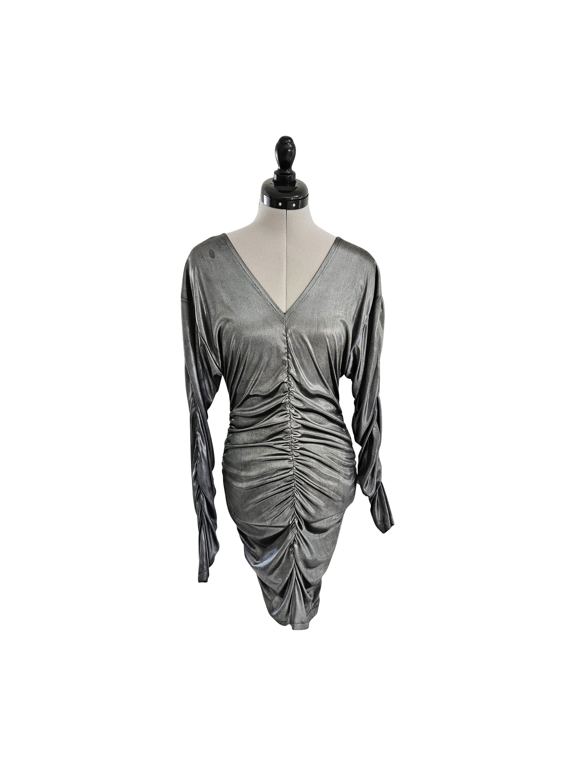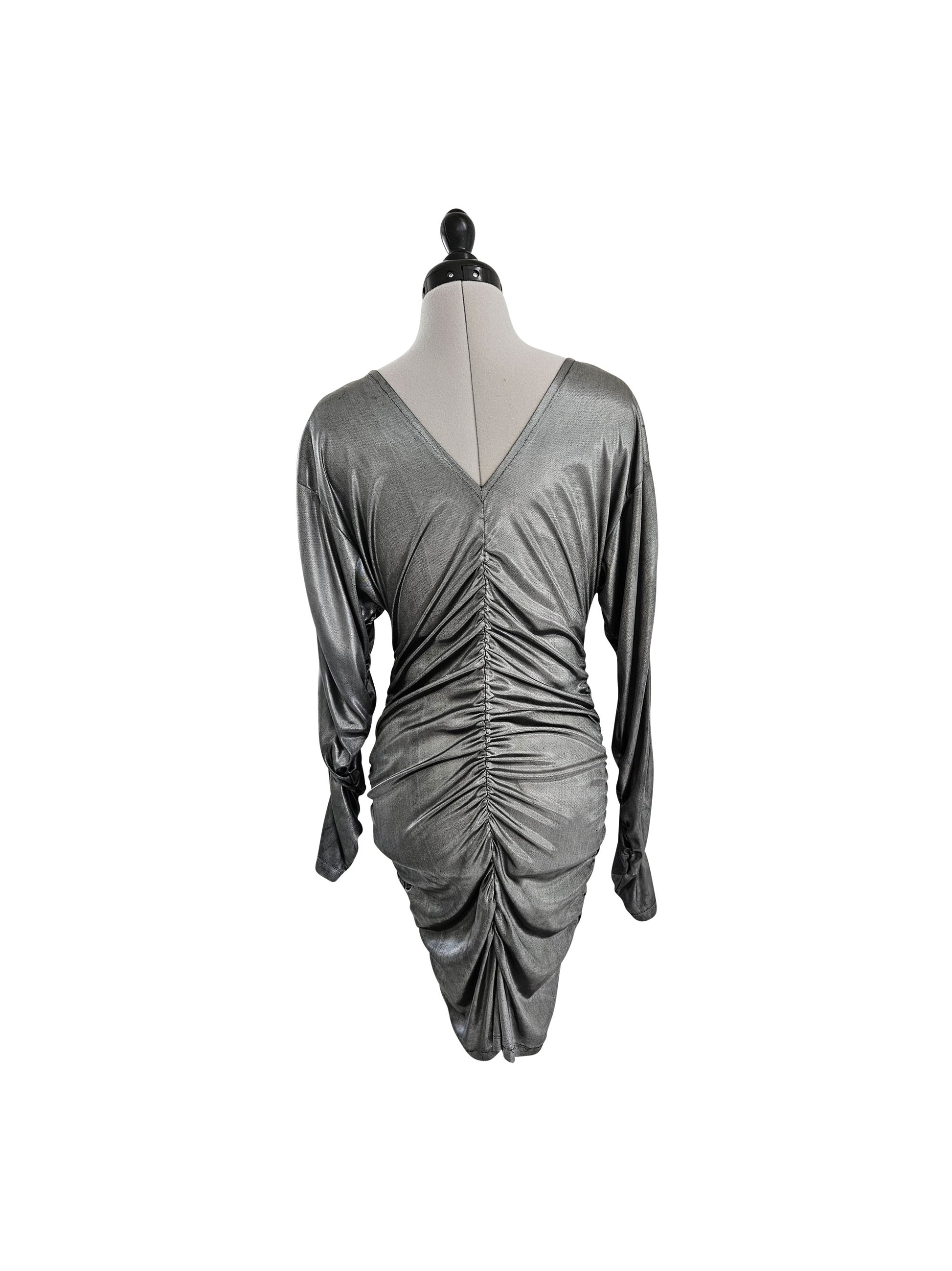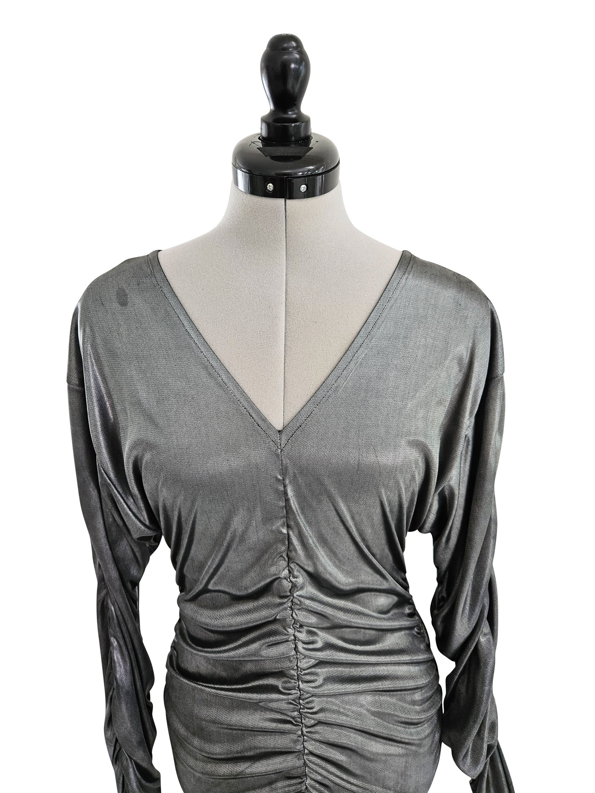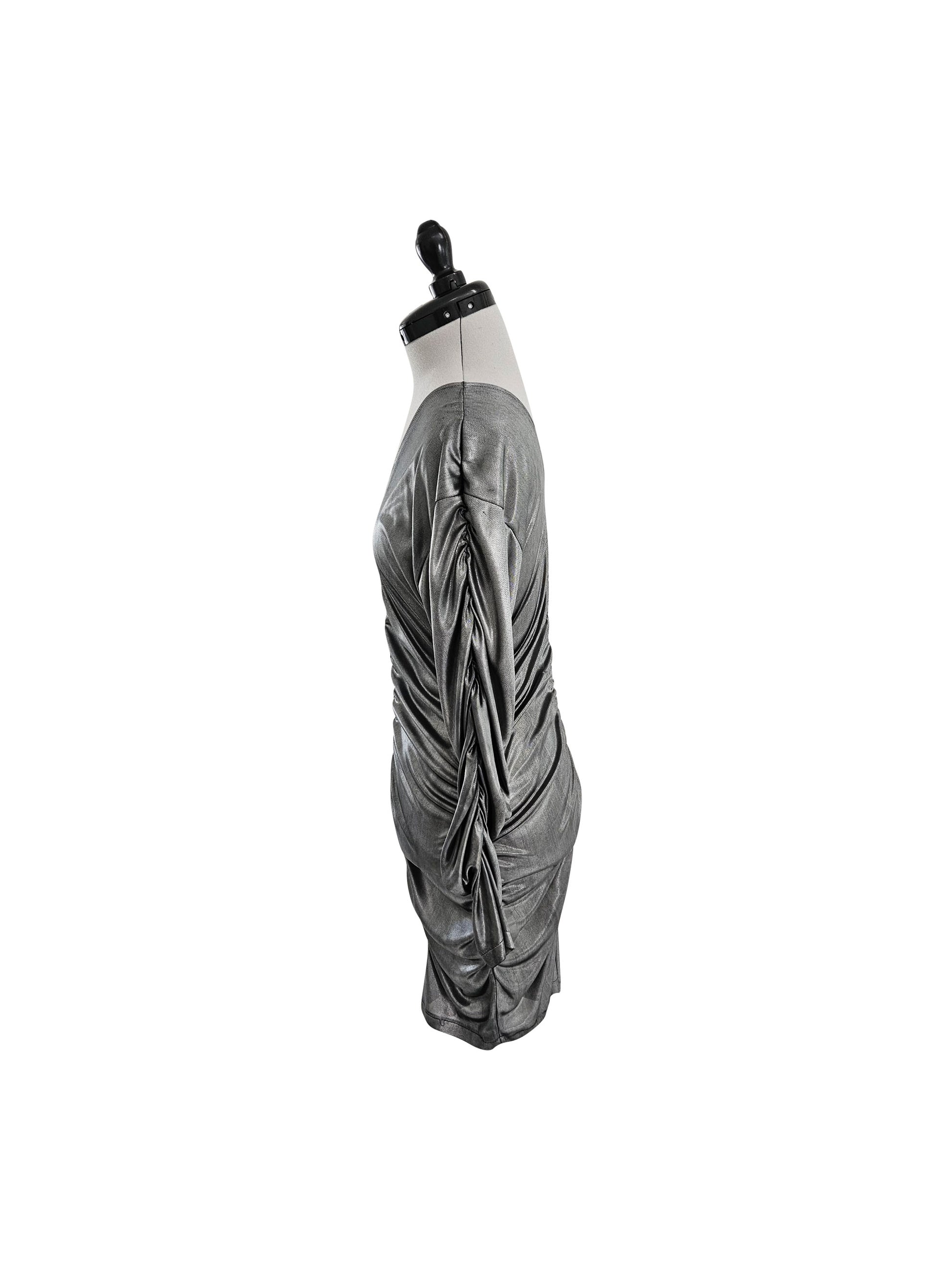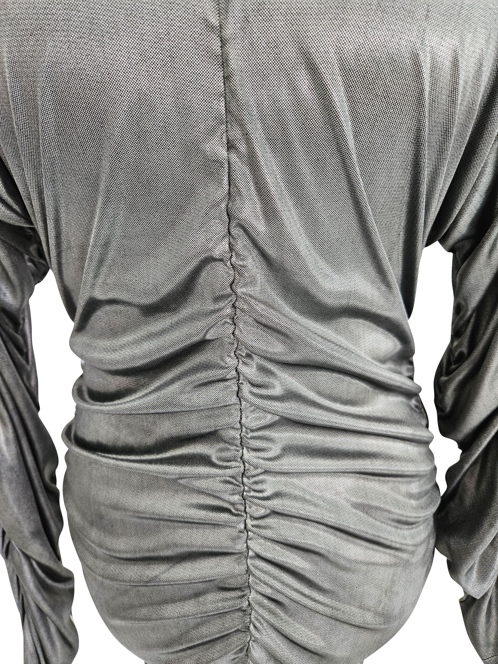 Entdecken Sie das Chromantic, ein enganliegendes Cocktailkleid, das mit seiner schimmernden Oberfläche und eleganten Details besticht. Dieses Kleid in Anthrazit zeichnet sich durch einen Etuischnitt aus und bietet durch Gummizüge an der Vorder- und Rückseite der Taille eine perfekte Passform, die sich dem Körper anpasst.