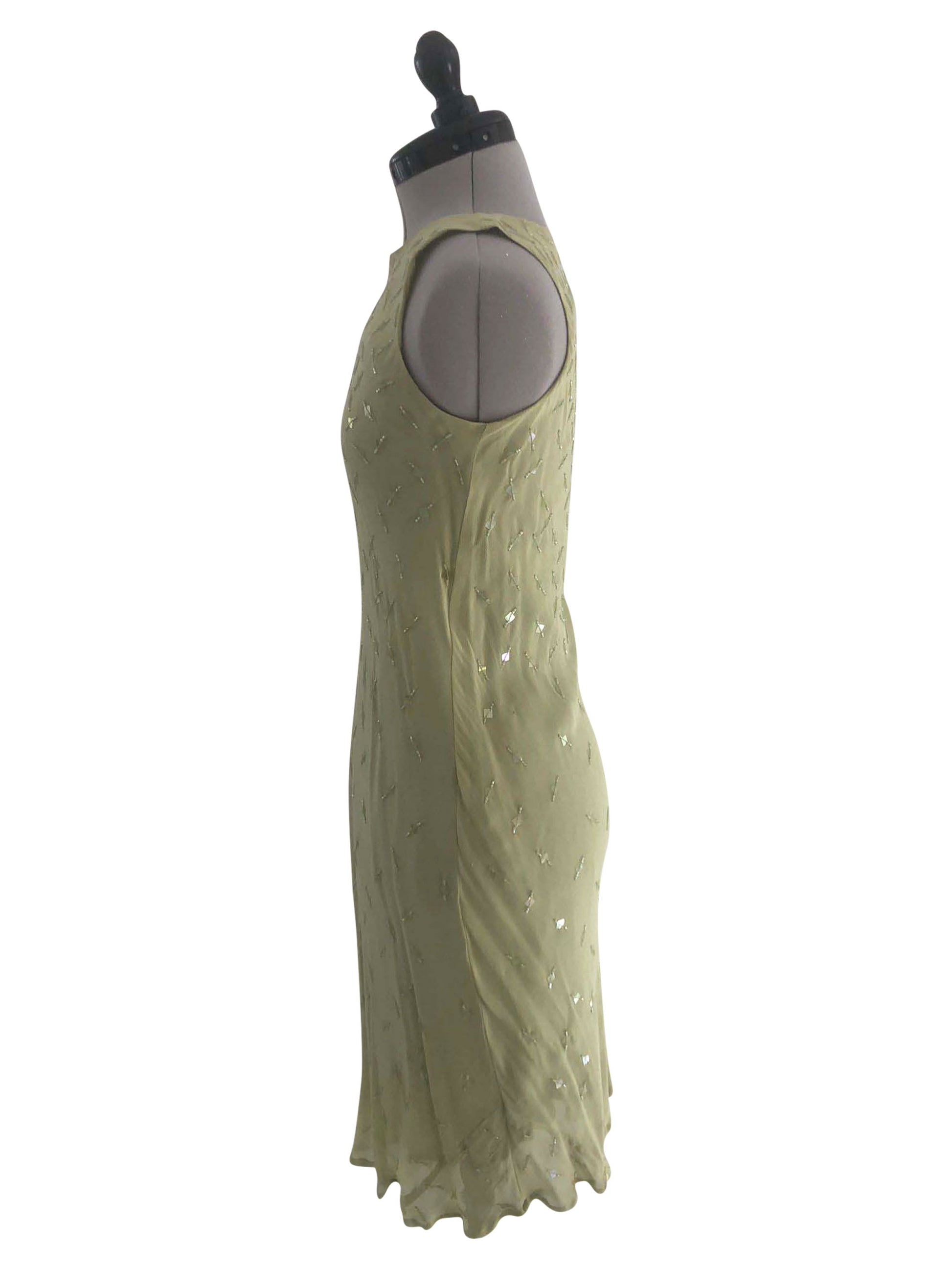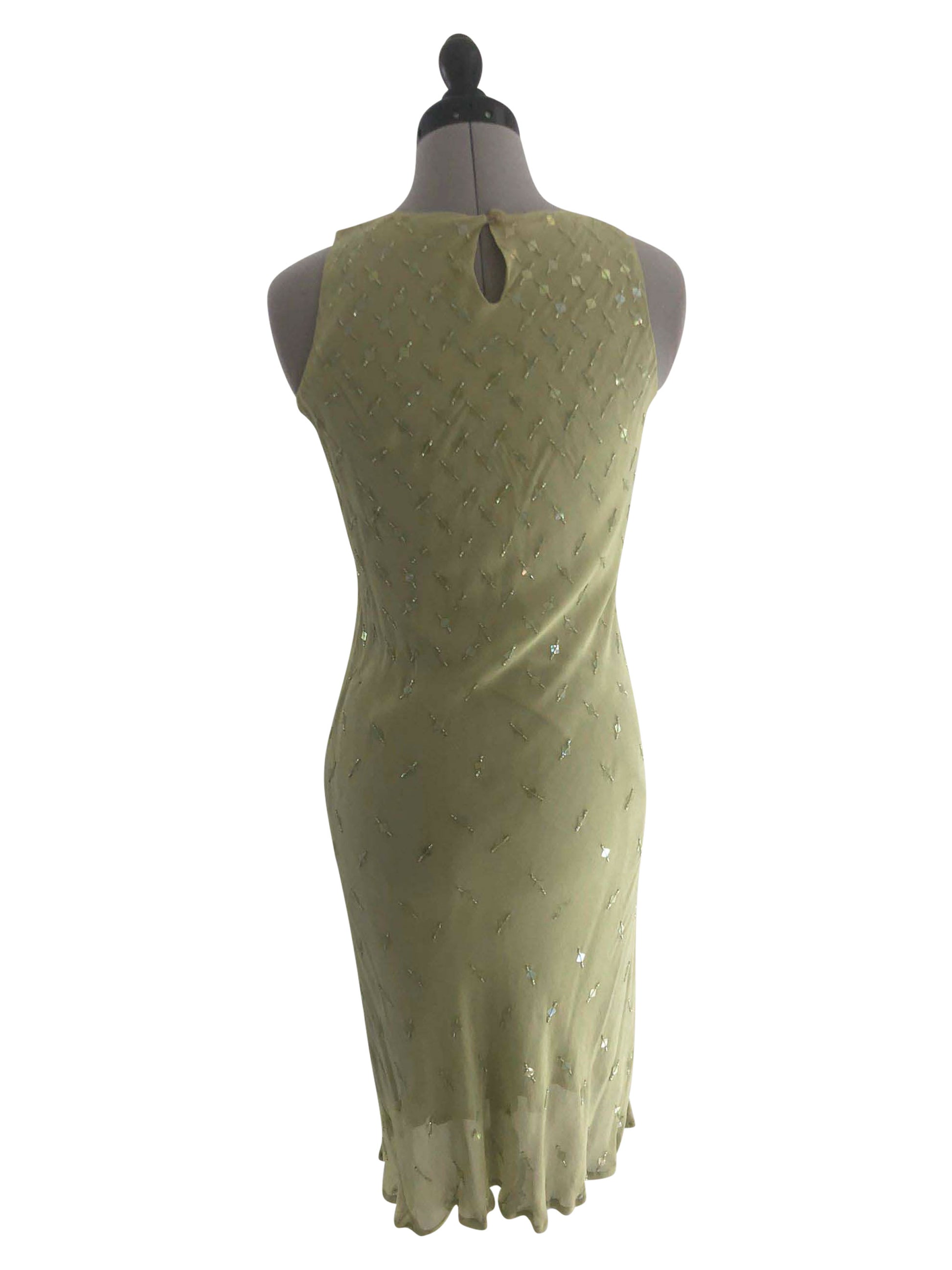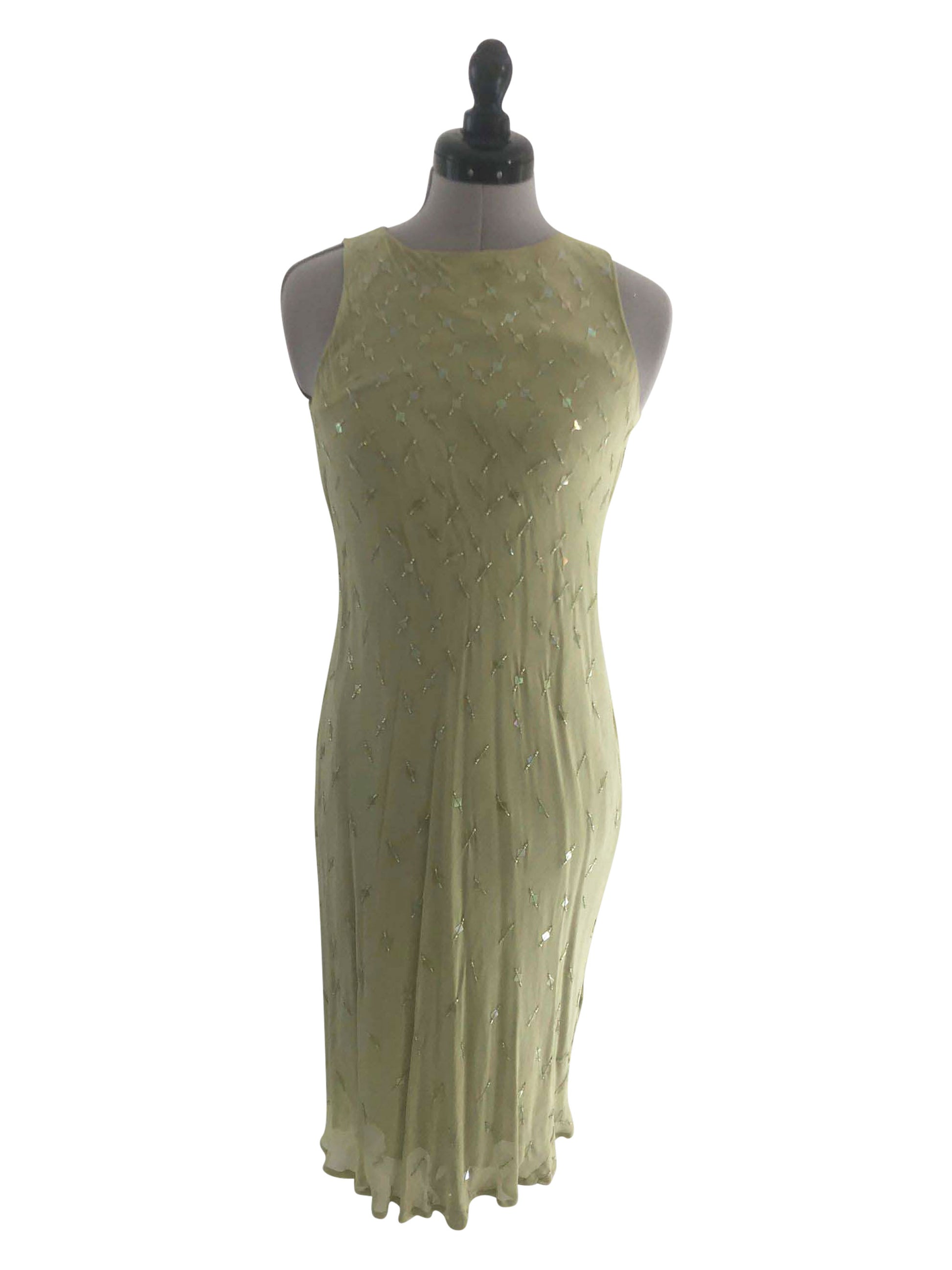 Schlüpfe in unser zartes Cocktailkleid und erlebe schlichte Eleganz in voller Blüte. Dieses ärmellose, hochgeschlossene Kleid in einem sanften Lindengrün. Der gerade Etuischnitt bietet dank des zweilagigen Kreppstoffs einen angenehmen Tragekomfort. Der runde Ausschnitt unterstreicht die klassische Linienführung, ideal für Grösse 36. Dieses Kleid ist ein perfekter Begleiter für Sommerevents.🌿✨