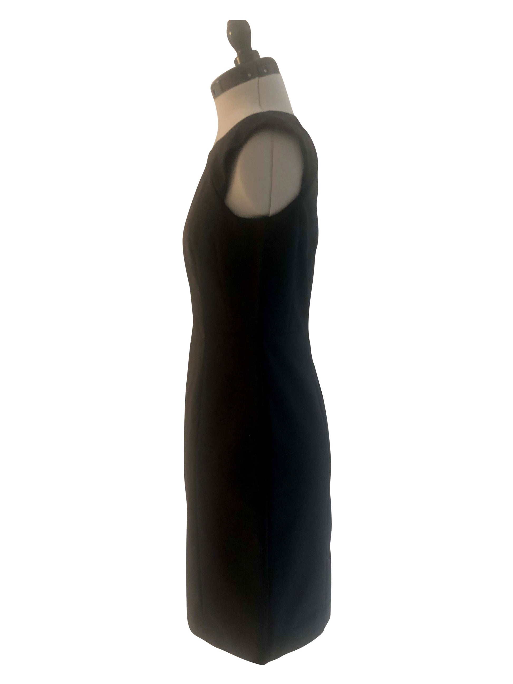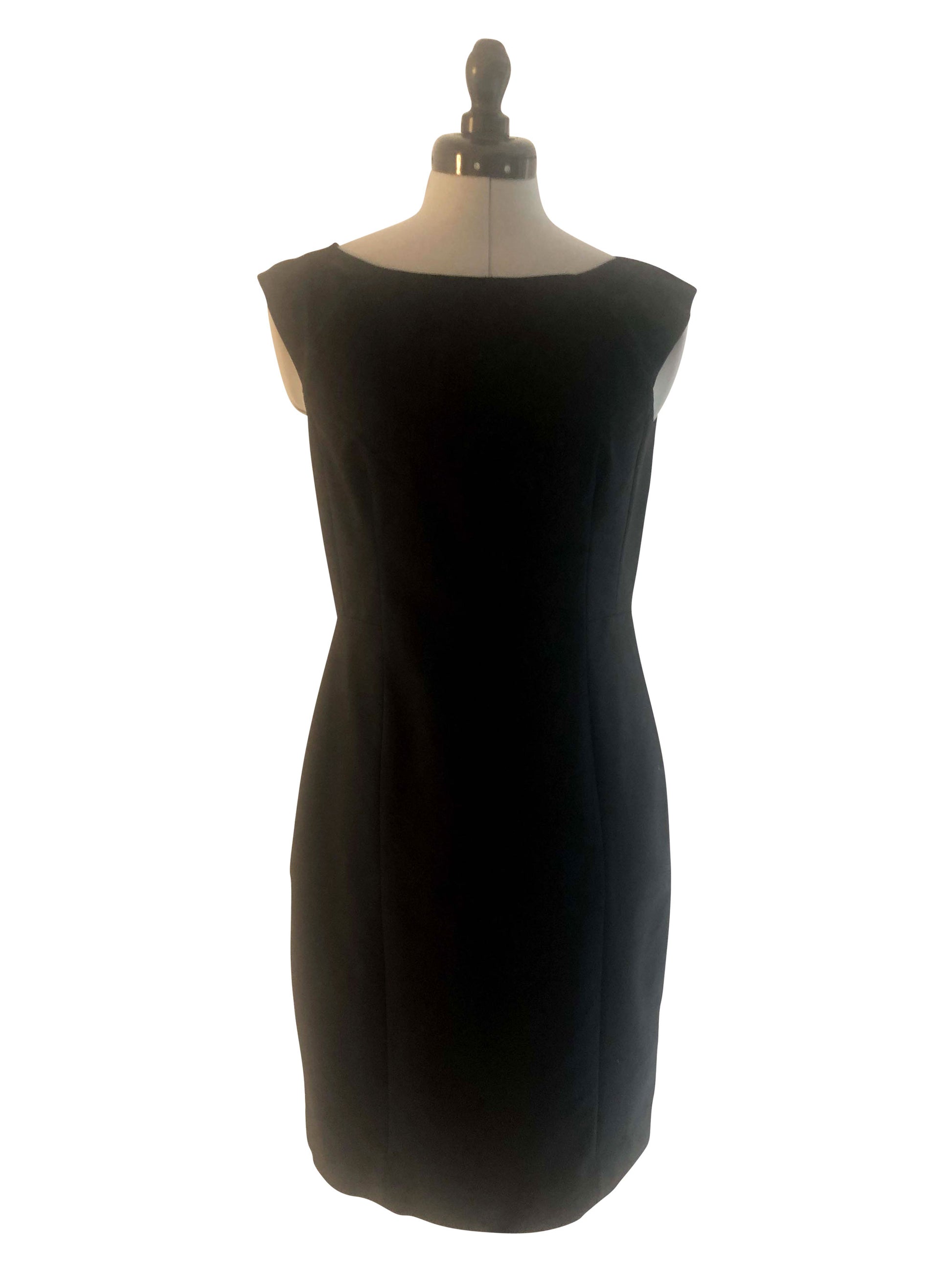 Verkörpere schlichte Eleganz in unserem ärmellosen Etuikleid in klassischem Schwarz. Dieses Kleid der Grösse 38 ist figurbetont geschnitten. Mit seinem runden Ausschnitt und dem schnörkellosen Design bietet dieses Stück eine zeitlose Basis für vielseitige Styling-Optionen.