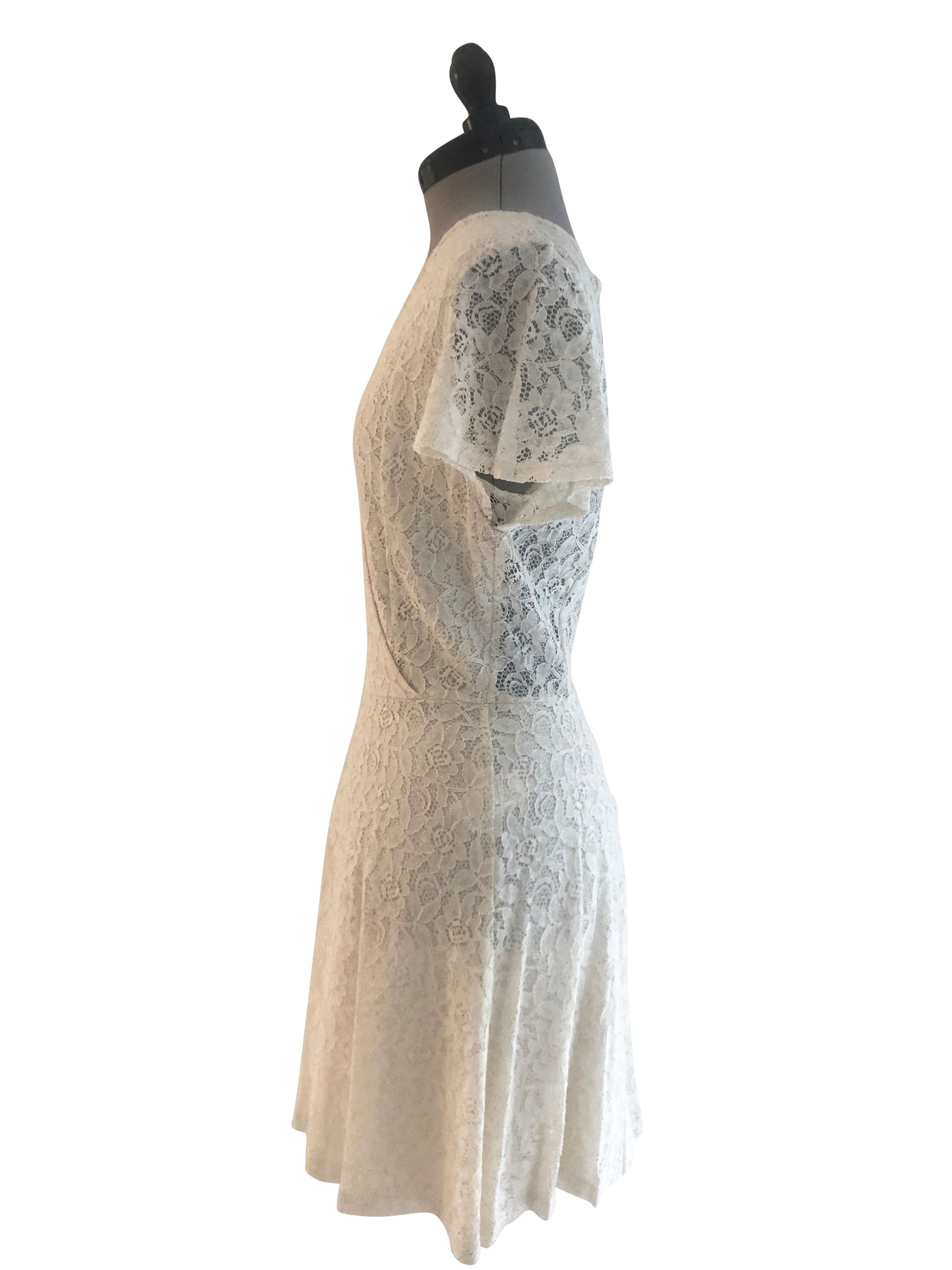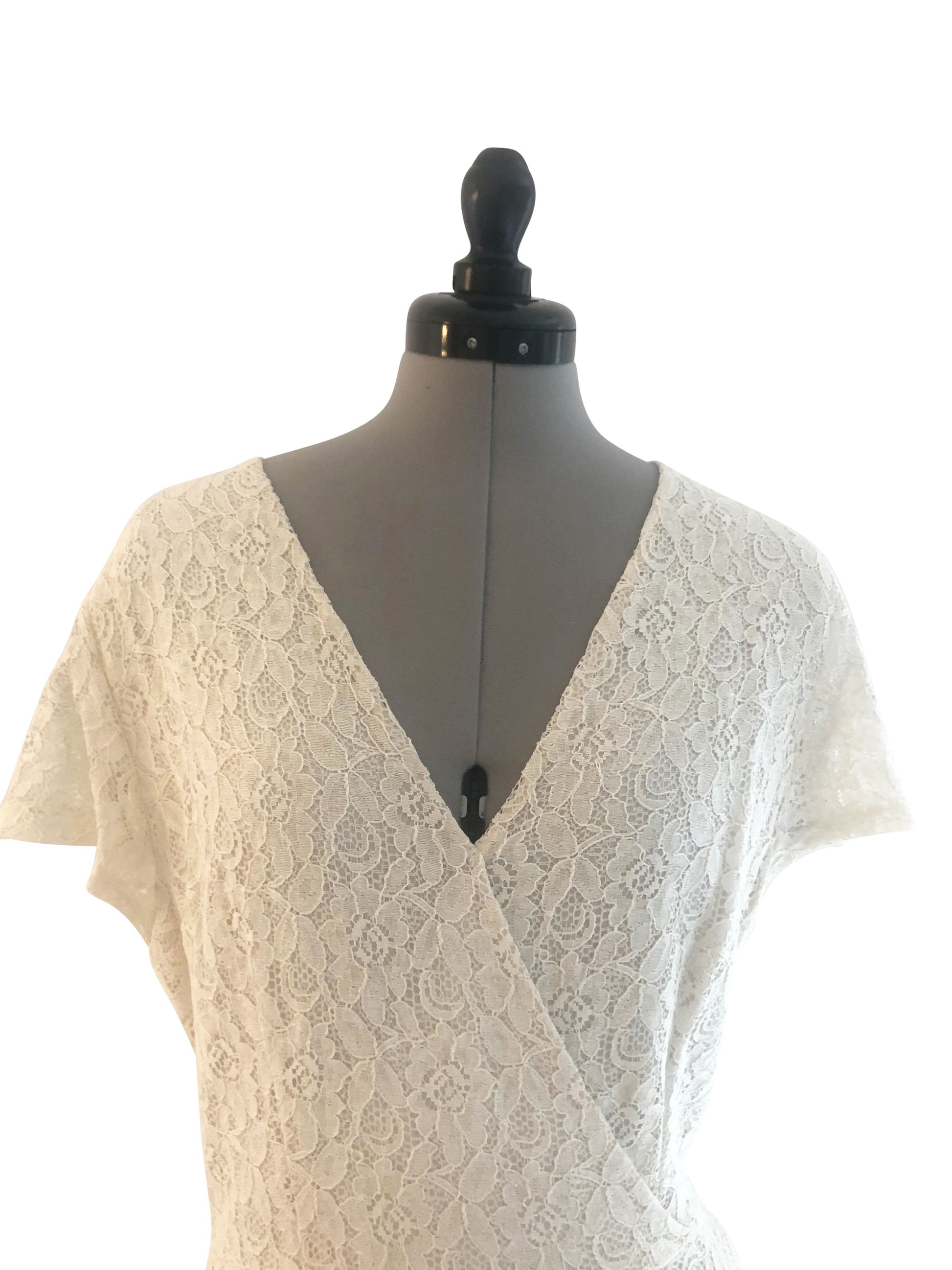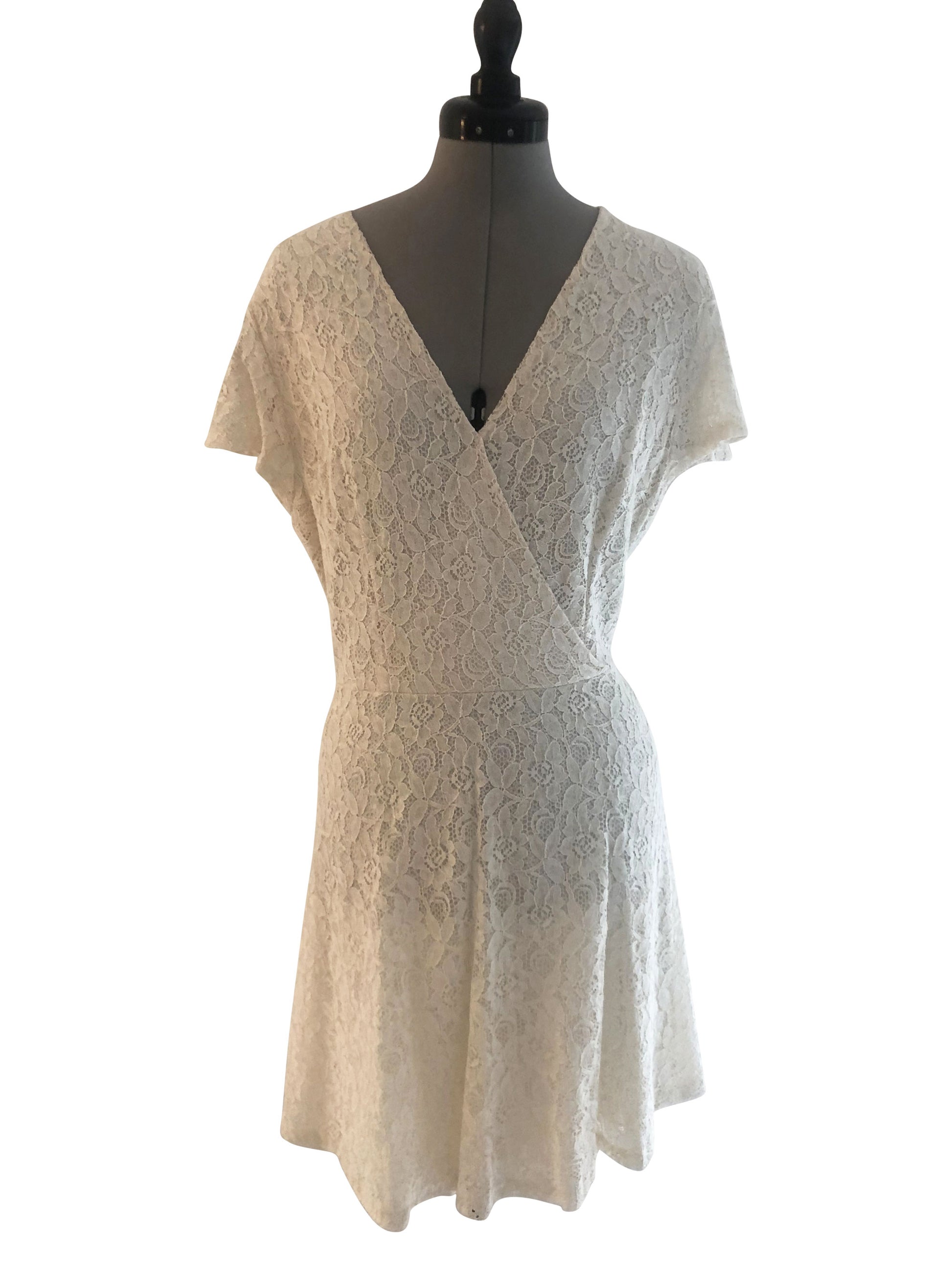 Hülle dich in den zarten Charme unseres kurzärmeligen Spitzenkleides. Dieses Kleid in der Grösse 38 beeindruckt mit einem gewickelten Oberteil und einem grosszügigen, weiten Rock, der bei jeder Bewegung sanft mitschwingt. Der V-Ausschnitt betont das Dekolleté, während die A-Linie eine schmeichelhafte Figur zaubert.