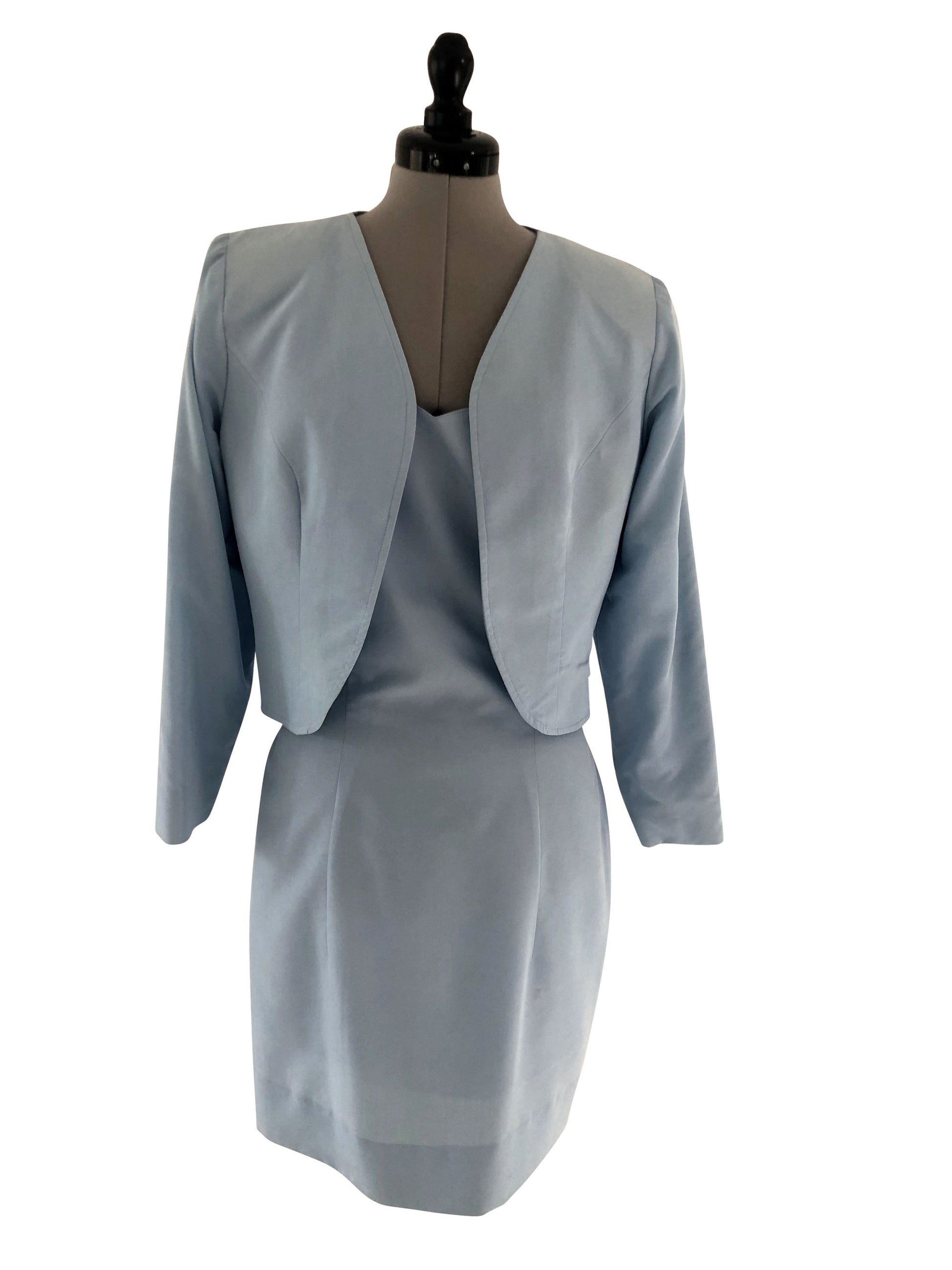 Dieses ärmellose Cocktailkleid in Grösse 40 ist in Hellblau und zeichnet sich durch seinen klassischen Etui-Schnitt aus. Im Lieferumfang enthalten ist zudem eine passende Bolerojacke, die das Ensemble ideal ergänzt und sich für kühlere Tage oder formelle Anlässe eignet. Dieses Set ist besonders geeignet für geschäftliche Veranstaltungen, formelle Zusammenkünfte oder als elegante Wahl für besondere Anlässe.