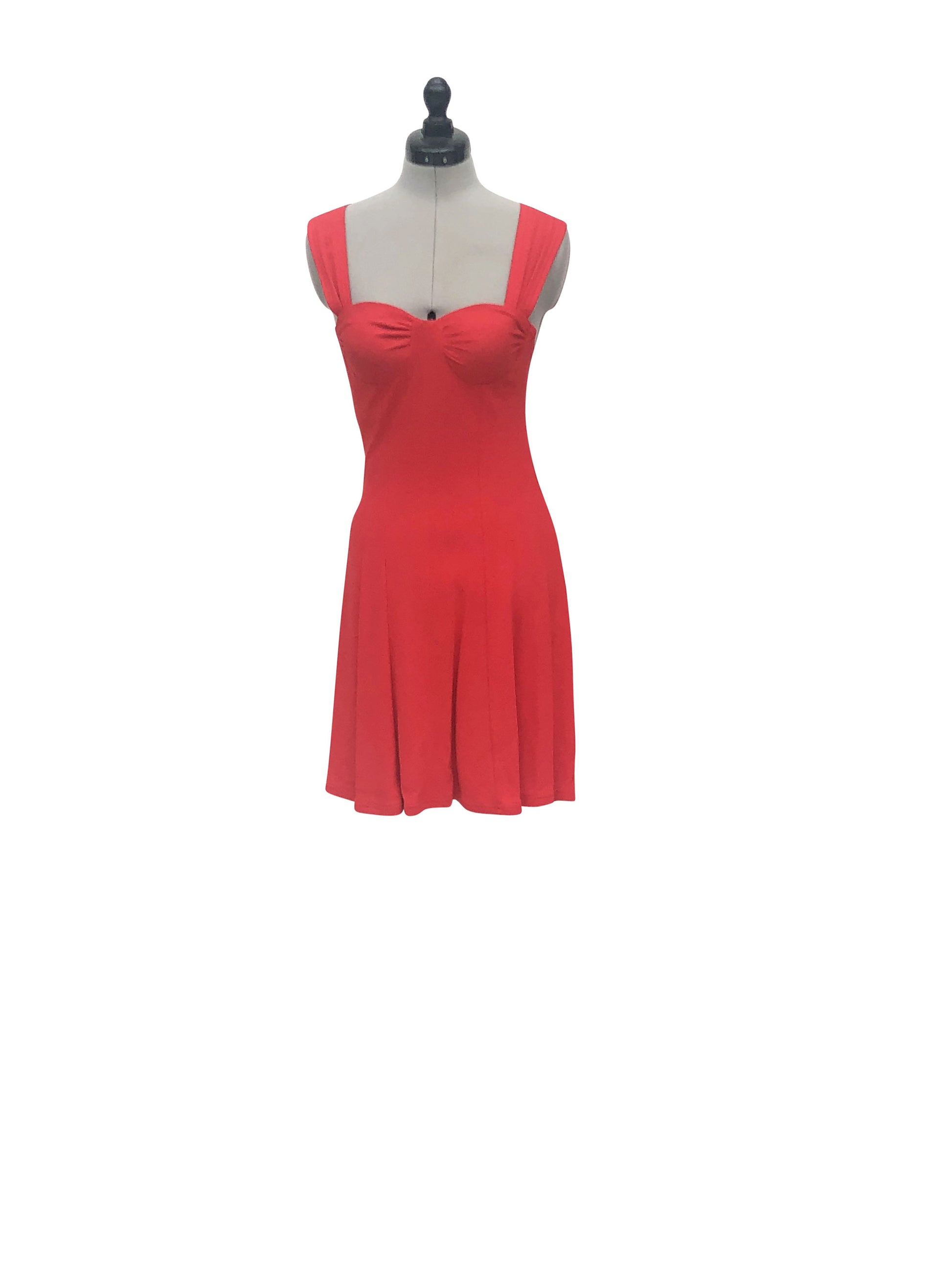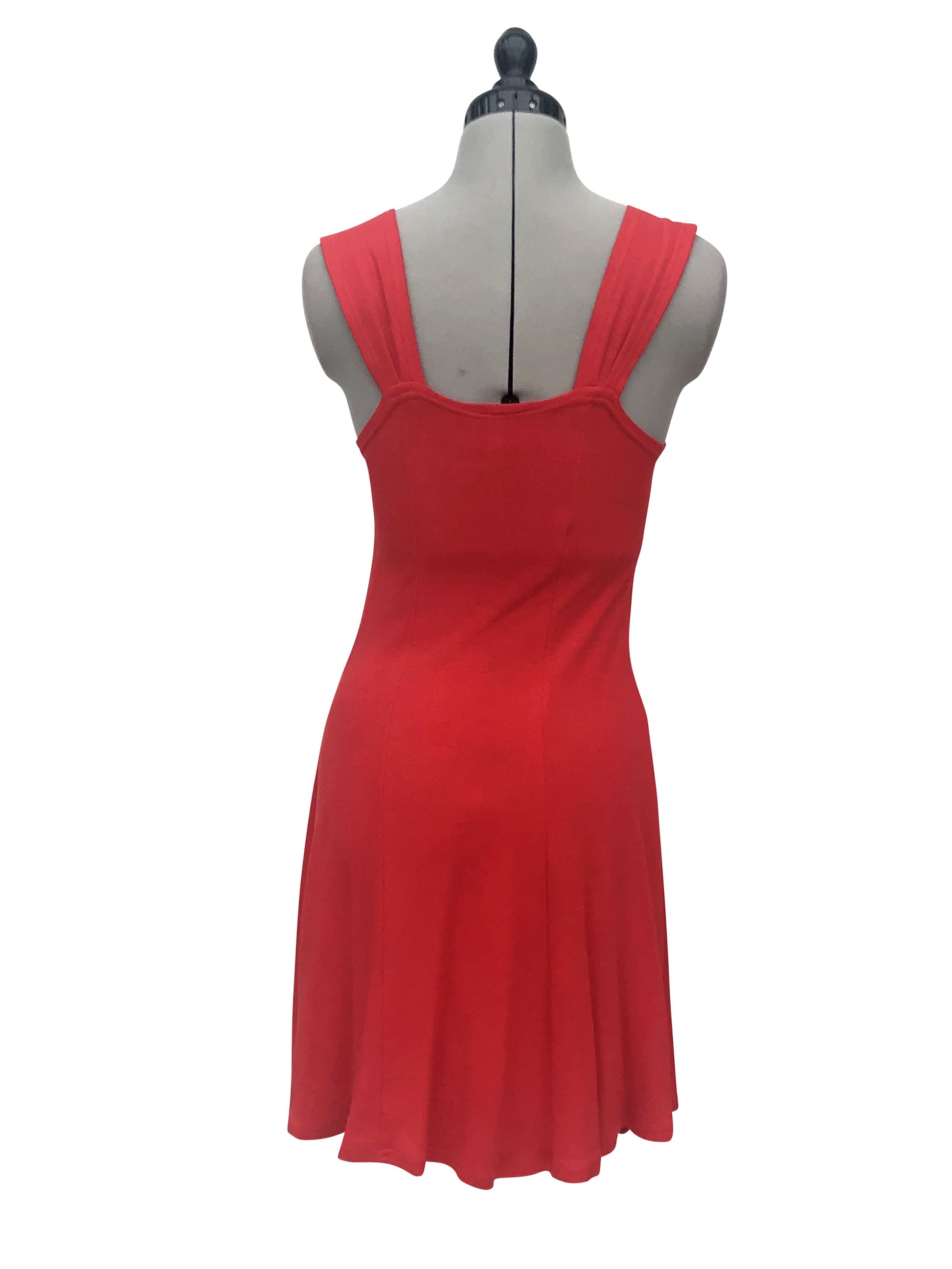 Dieses lebendig rote Cocktailkleid in Grösse 36 verkörpert sommerliche Leichtigkeit und Eleganz. Es ist ideal für Cocktailpartys und andere gesellschaftliche Veranstaltungen, bei denen ein fröhliches und stilvolles Auftreten gefragt ist. Das Kleid zeichnet sich durch ein eng anliegendes Oberteil aus mit einem der schwingende Rock in A-Linie. Gefertigt aus weichem Jersey-Stoff, bietet das einteilige Kleid einen angenehmen Tragekomfort, der es zur perfekten Wahl für warme Tage und Abende macht.
