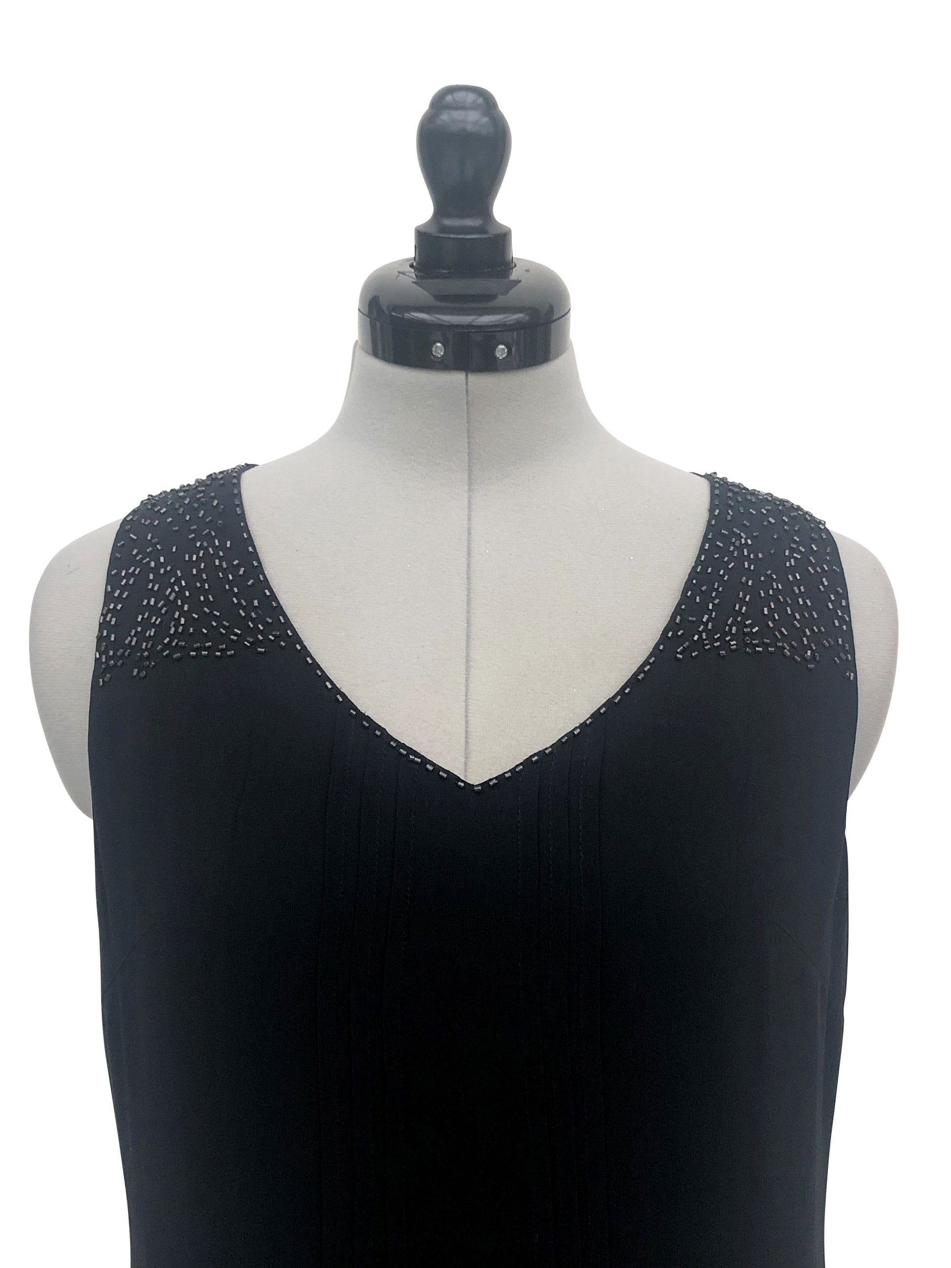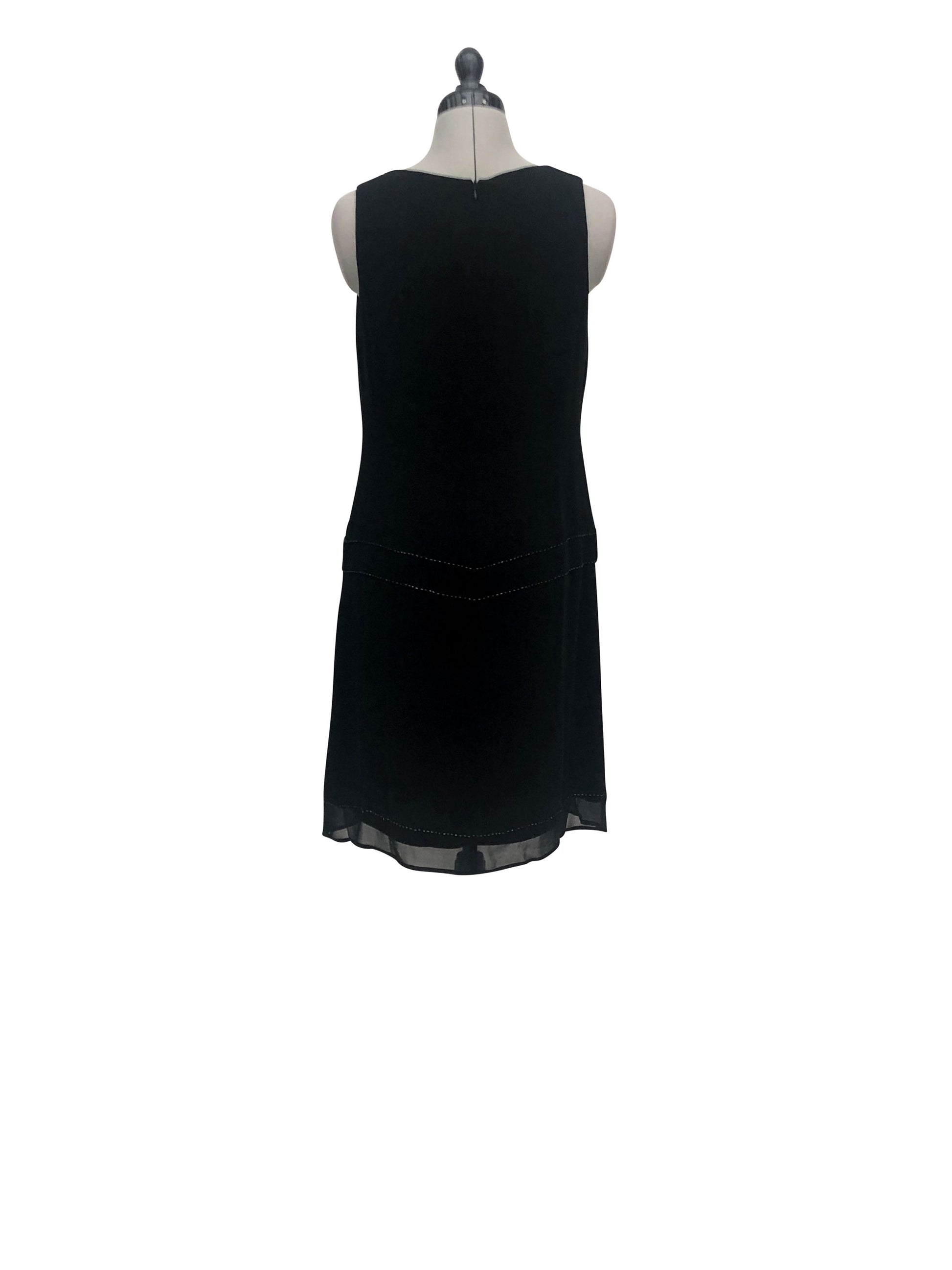 Dieses ärmellose, gerade geschnittene Cocktailkleid in Schwarz ist eine schlichte und doch elegante Wahl für vielseitige Anlässe. Ideal für die Grössen 38-40, zeichnet es sich besonders durch das locker fallende Design und das mit schwarzen Pailletten verzierte Oberteil aus. Diese funkelnden Details verleihen dem ansonsten schlichten Kleid eine glamouröse Note. Der runde Ausschnitt ergänzt die lockere Passform und sorgt für eine angenehme Trageweise.