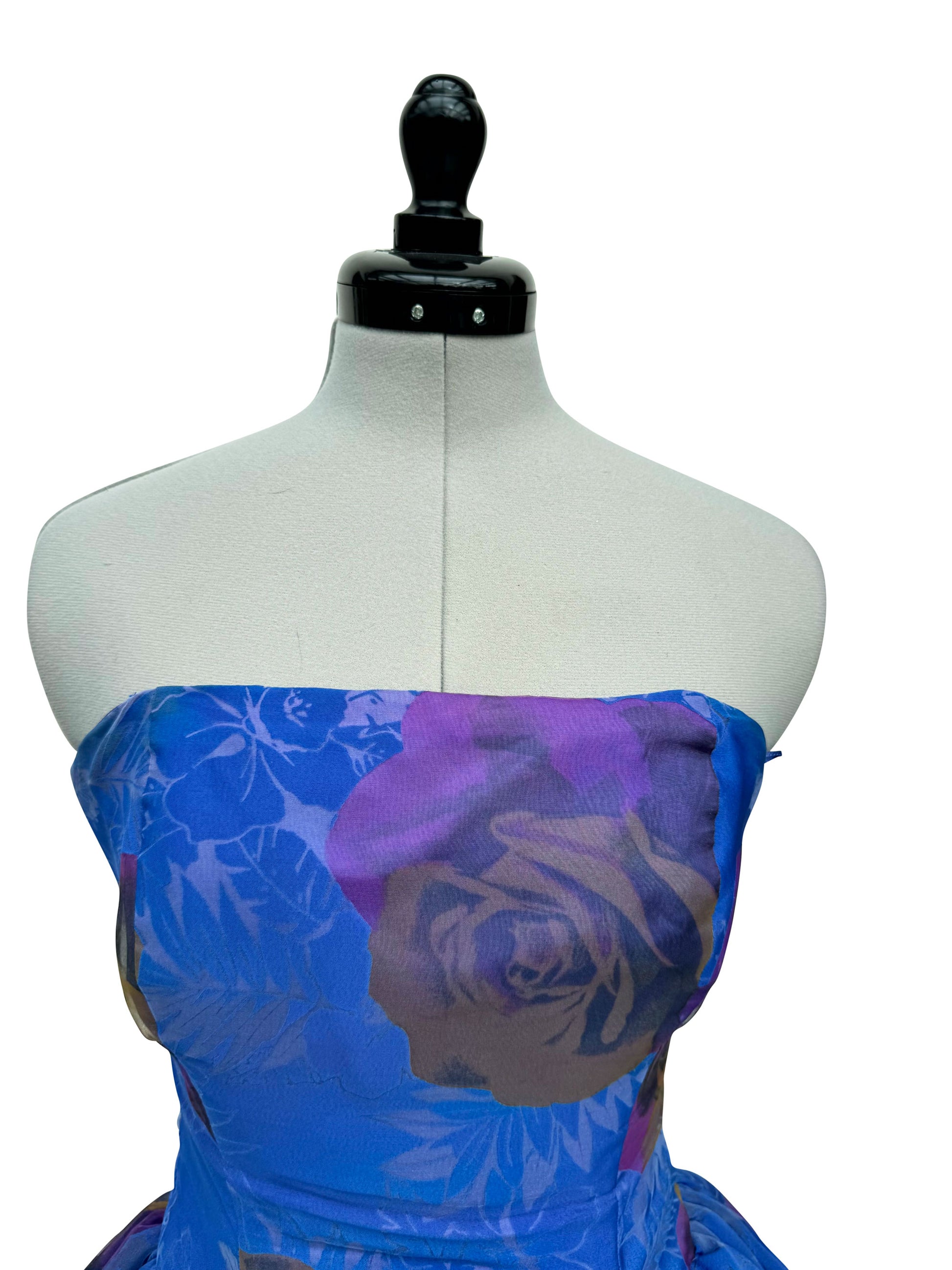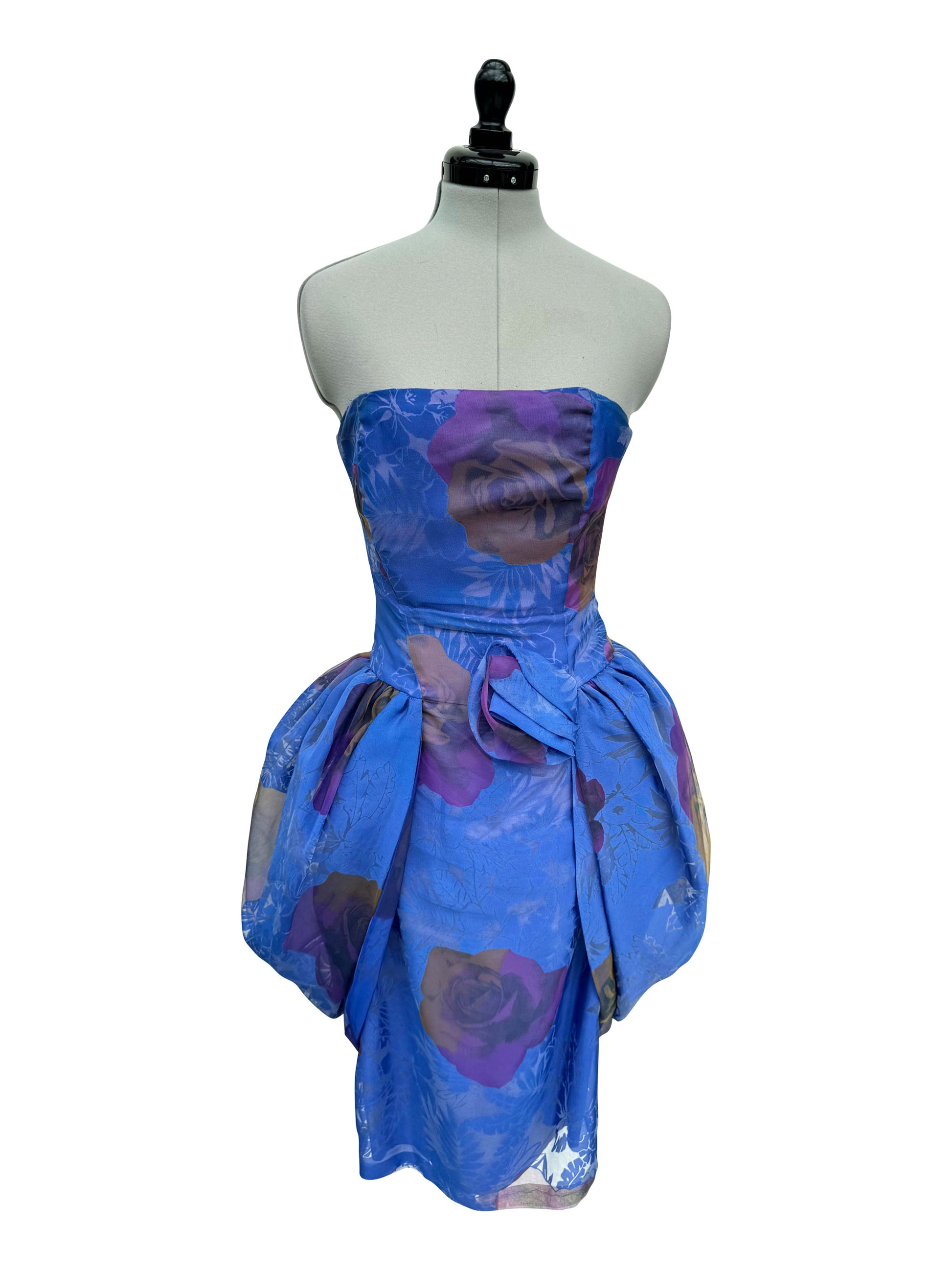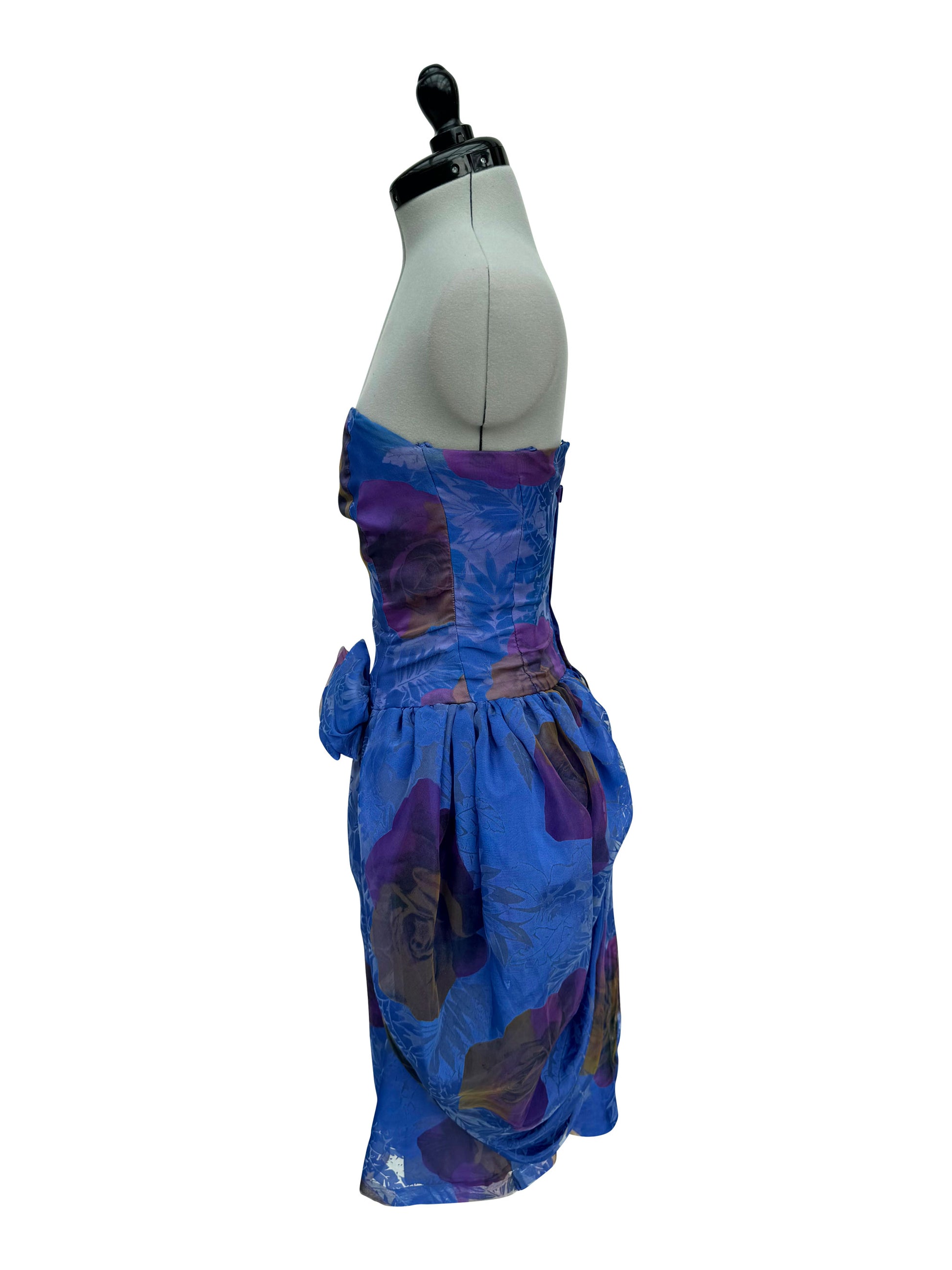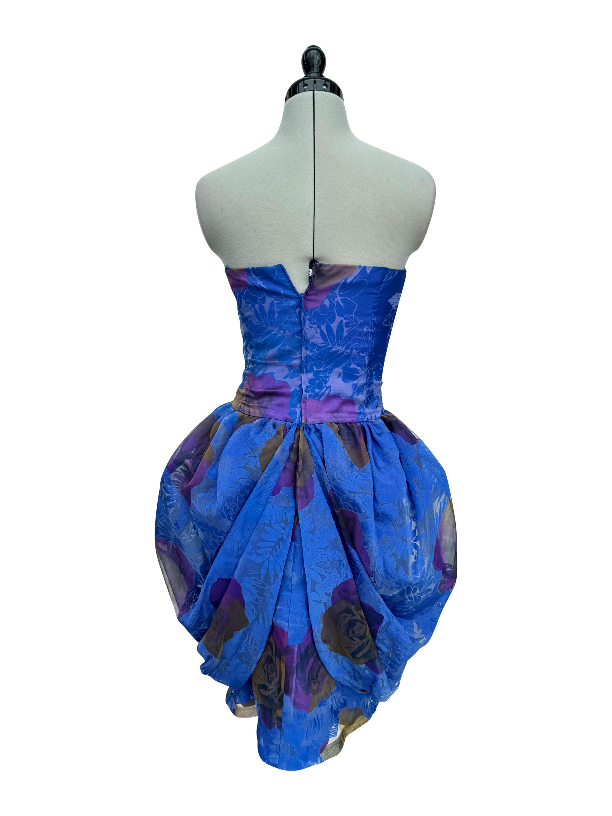 Dieses atemberaubende Cocktailkleid in kräftigem Königsblau zieht alle Blicke auf sich. Der gerade Ausschnitt und der figurbetonte Bustierschnitt heben die Silhouette hervor, während der drapierte, weite Rock aus Tüll für eine elegante, fließende Bewegung sorgt. Ein besonderes Detail ist die Stoffblume, die geschickt in der vorderen Taillenmitte platziert ist und einen charmanten Akzent setzt.