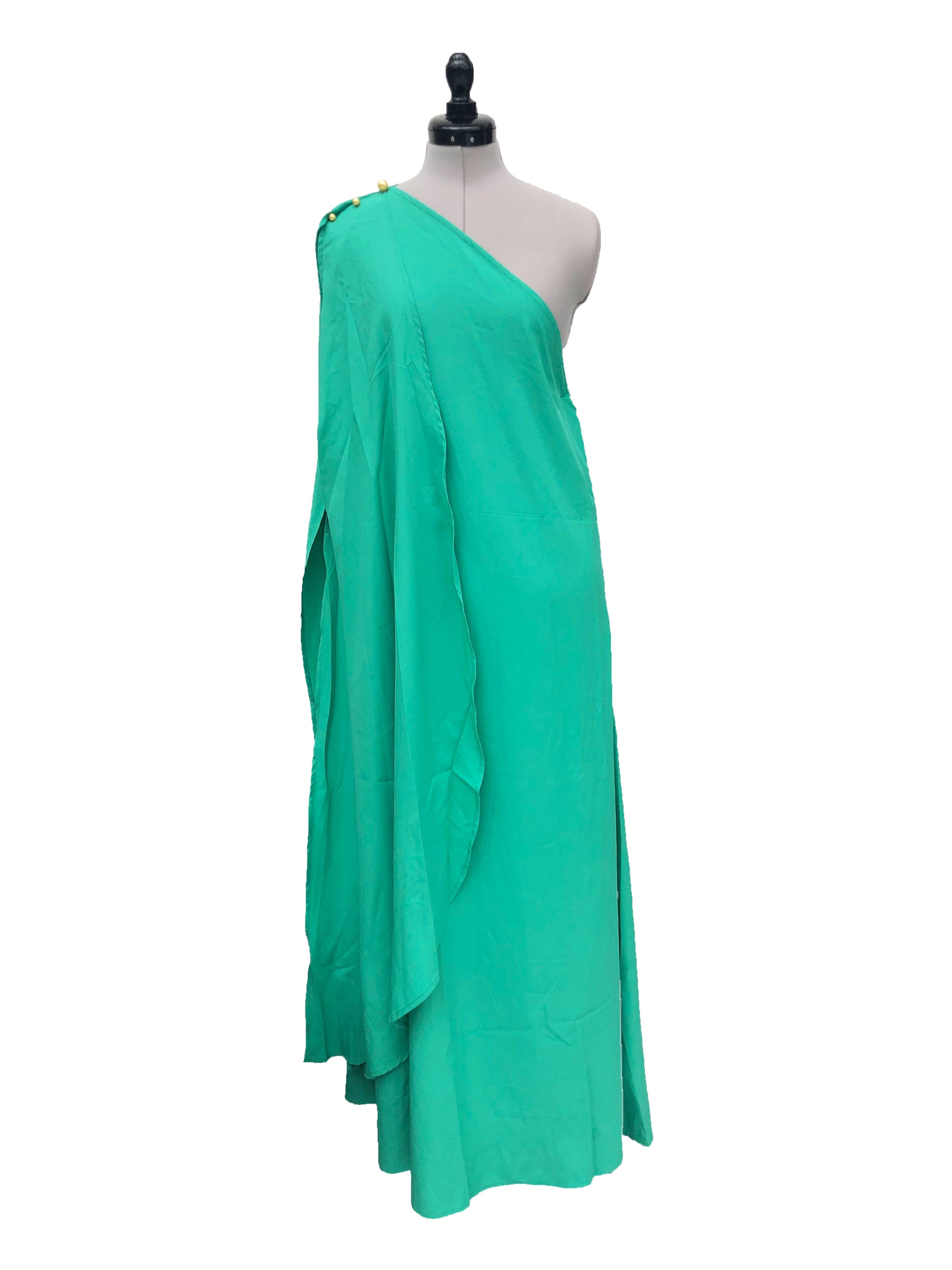 Das ärmellose Design mit einseitigem Umhang verleiht dem Kleid eine fliessende Silhouette. Der lockere Schnitt sorgt für angenehme Bewegungsfreiheit, während gelbe Perlen auf der Schulter einen raffinierten Akzent setzen. Ideal für Events, bei denen du dich wohlfühlen und trotzdem auffallen willst. 🌟