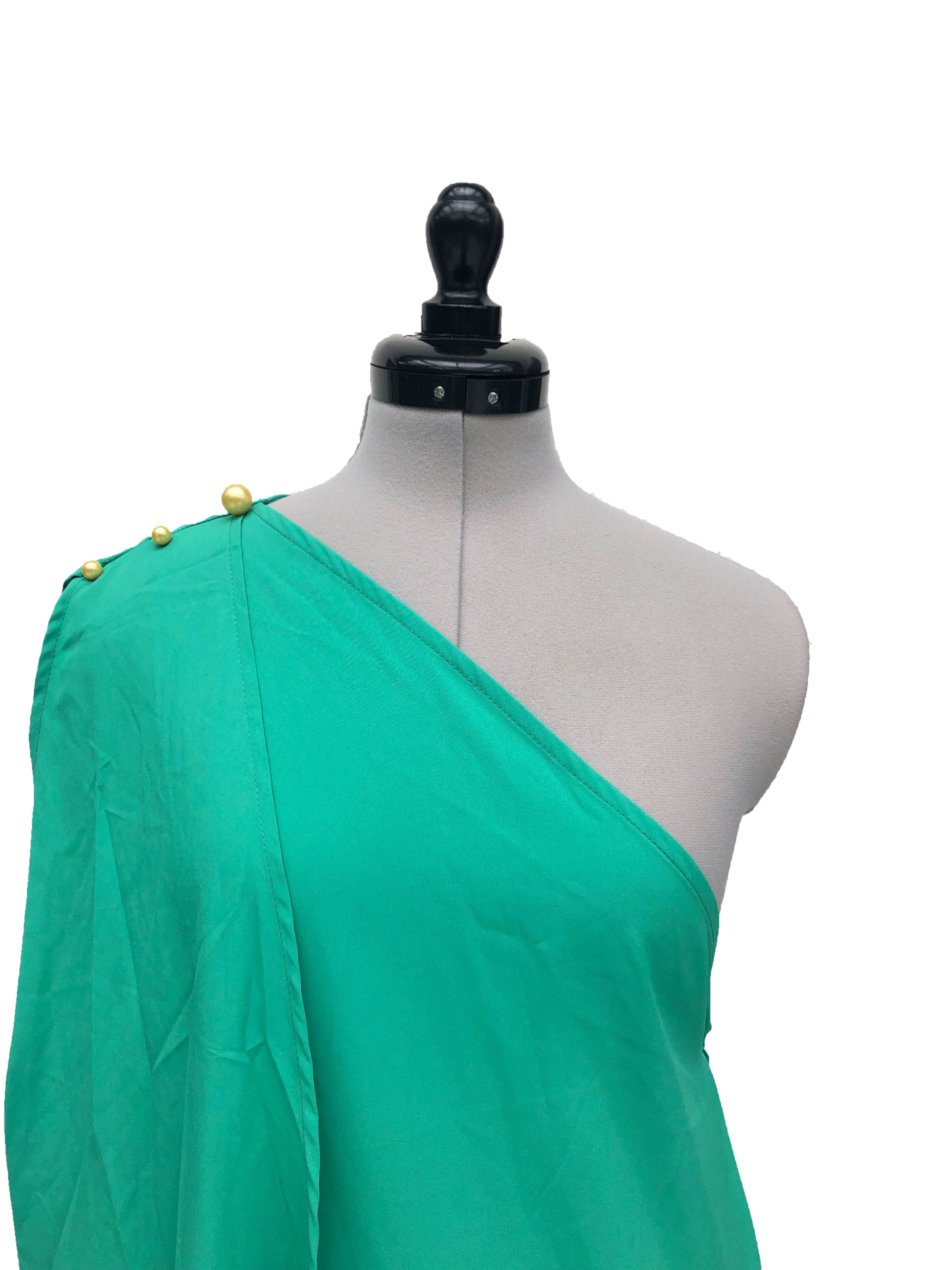 Elegant, luftig und mit einem besonderen Detail – dieses grüne Kleid in asymmetrischer Optik bringt moderne Leichtigkeit in deinen Look. 💚✨