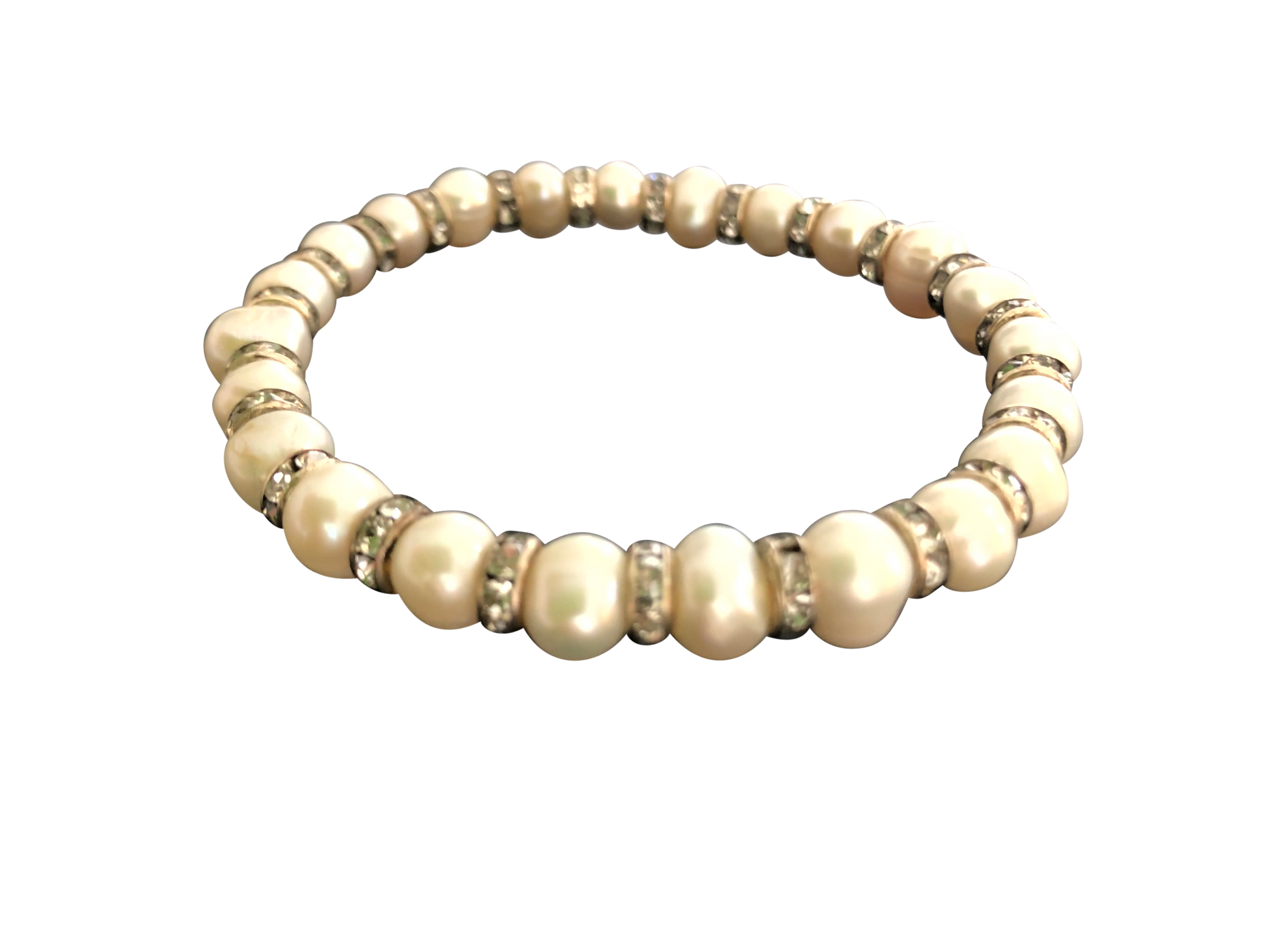 Ein elegantes Armband in Silber, verziert mit feinen Perlen und funkelnden Strasssteinen 💫. Das dehnbare Design sorgt für angenehmen Tragekomfort und macht es zum idealen Accessoire für festliche Anlässe oder den Alltag mit Stil.