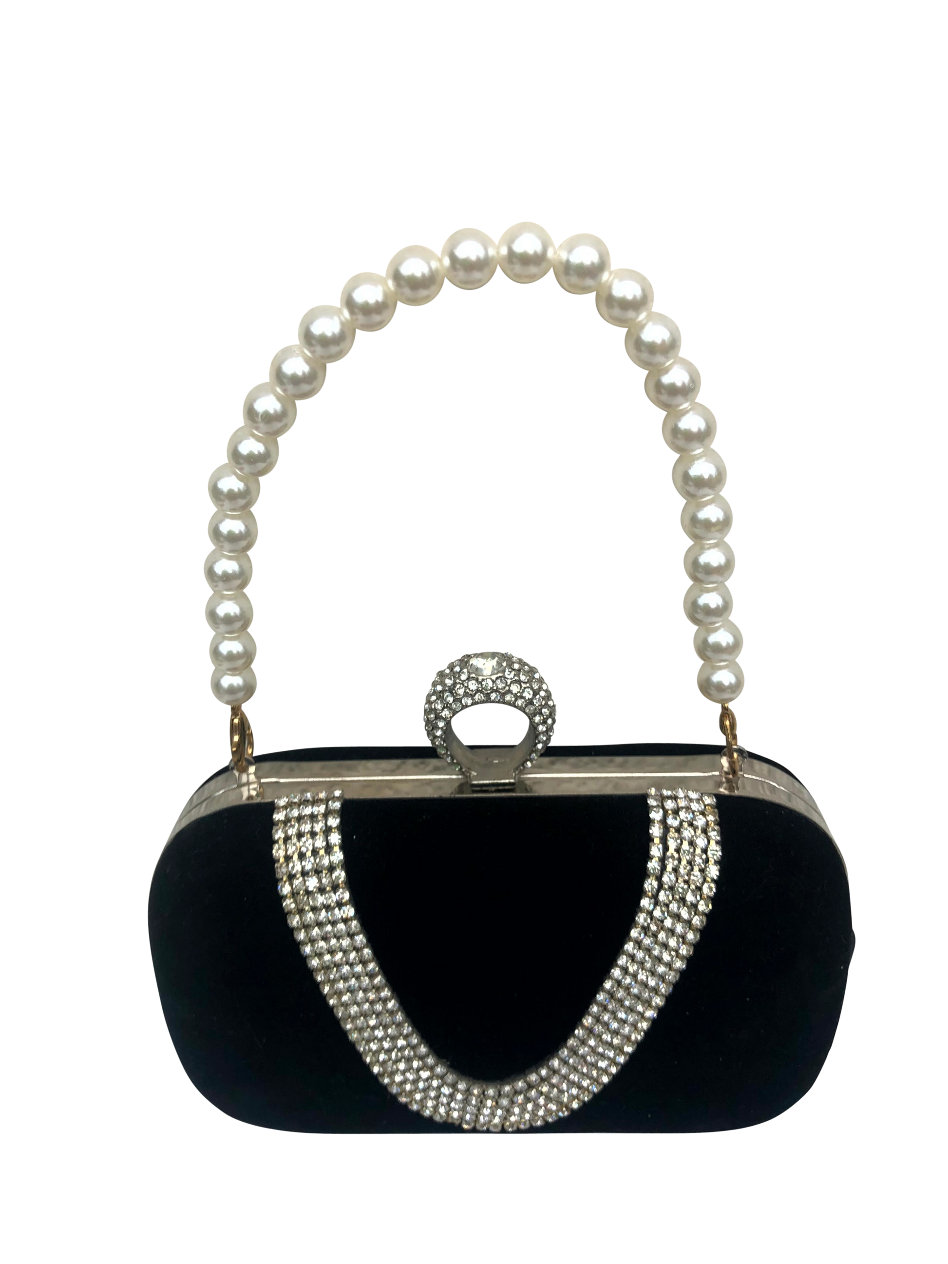 Edle Eleganz in Schwarz ✨ – diese Bügeltasche aus Samt ist mit funkelnden Steinen verziert und wird durch den kurzen Henkel aus Perlen zum echten Hingucker. Perfekt für stilvolle Abendanlässe oder festliche Events. 💎