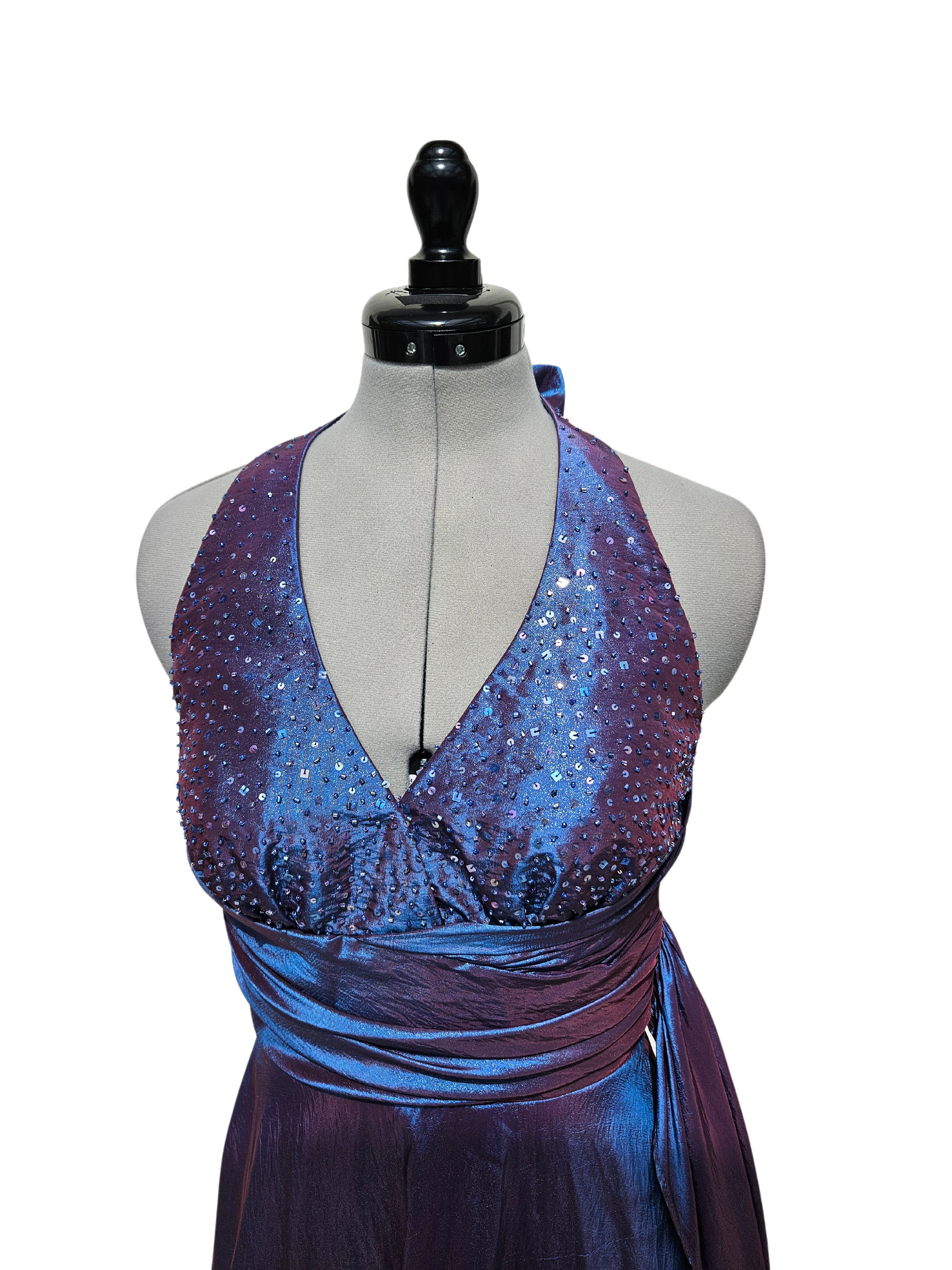 Frühling ins Rampenlicht mit diesem Cocktailkleid im knielangen Rockabilly-Stil, perfekt für Grösse 34-36. Das Oberteil, glamourös mit Pailletten bestickt, und die zwei Bänder auf der linken Seite, die lässig bis zu den Waden reichen, verleihen Ihnen einen unverwechselbaren Look. Die Taille ist im schicken Wasserfallstil gestaltet, während der Neckholderverschluss und der V-Ausschnitt Deinem Outfit eine Extraportion Coolness verpassen. 🎸✨