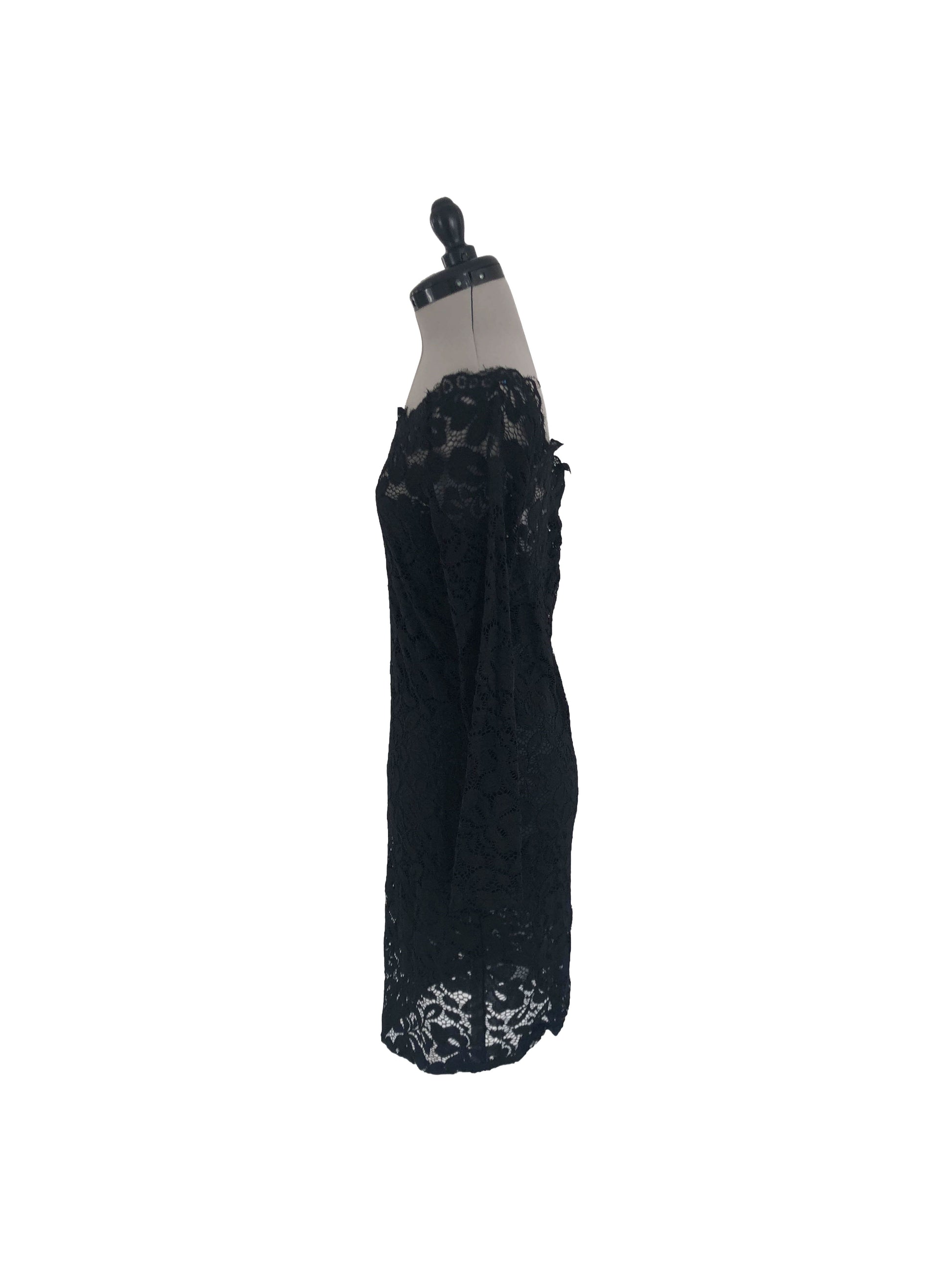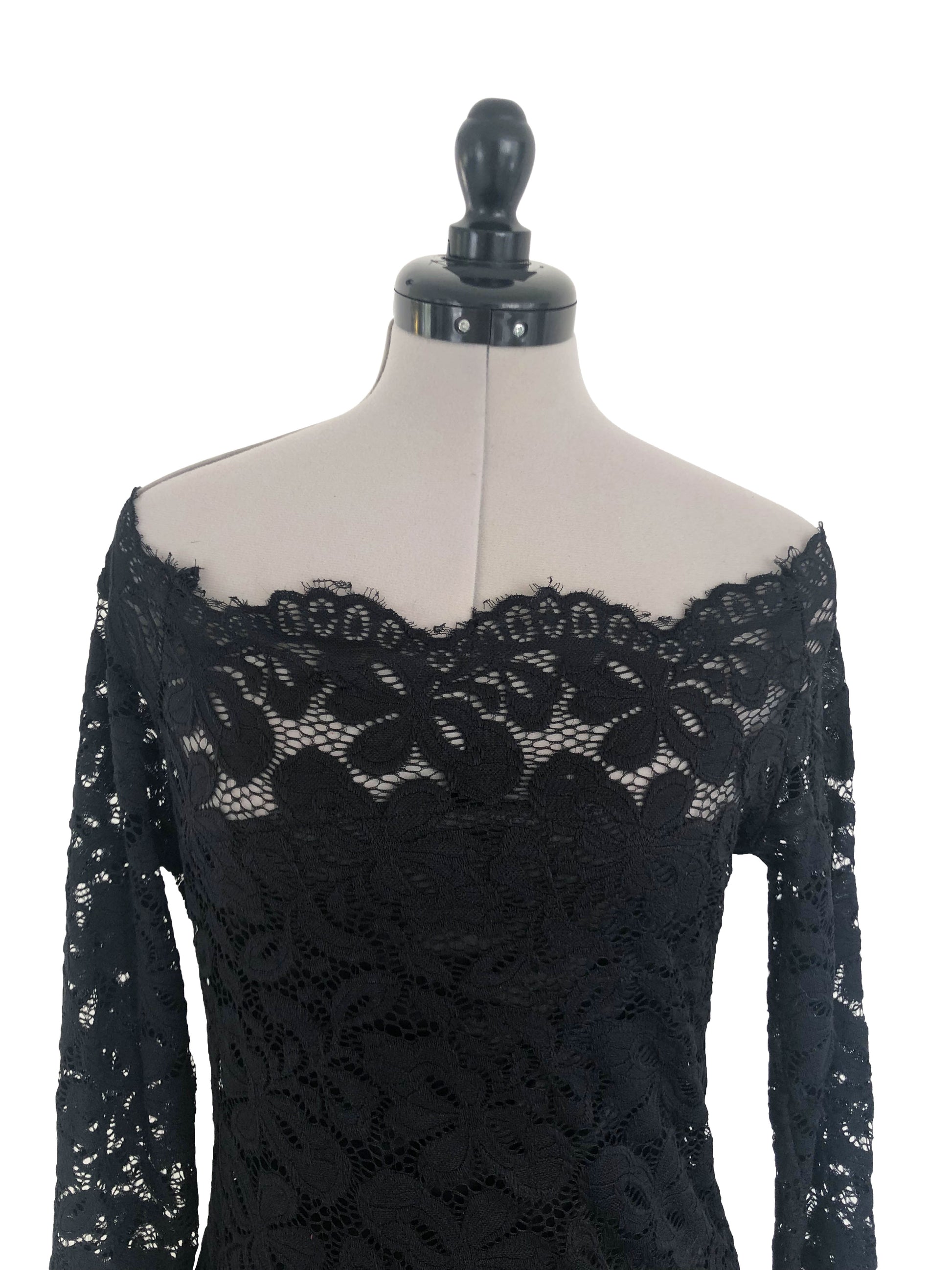 Elegant, sinnlich und stilvoll – dieses schulterfreie Kleid mit langen Ärmeln bringt deine Figur perfekt zur Geltung. Der körperbetonte Etui-Schnitt und die elastische Spitze schaffen einen modernen Look mit femininer Ausstrahlung. 🖤