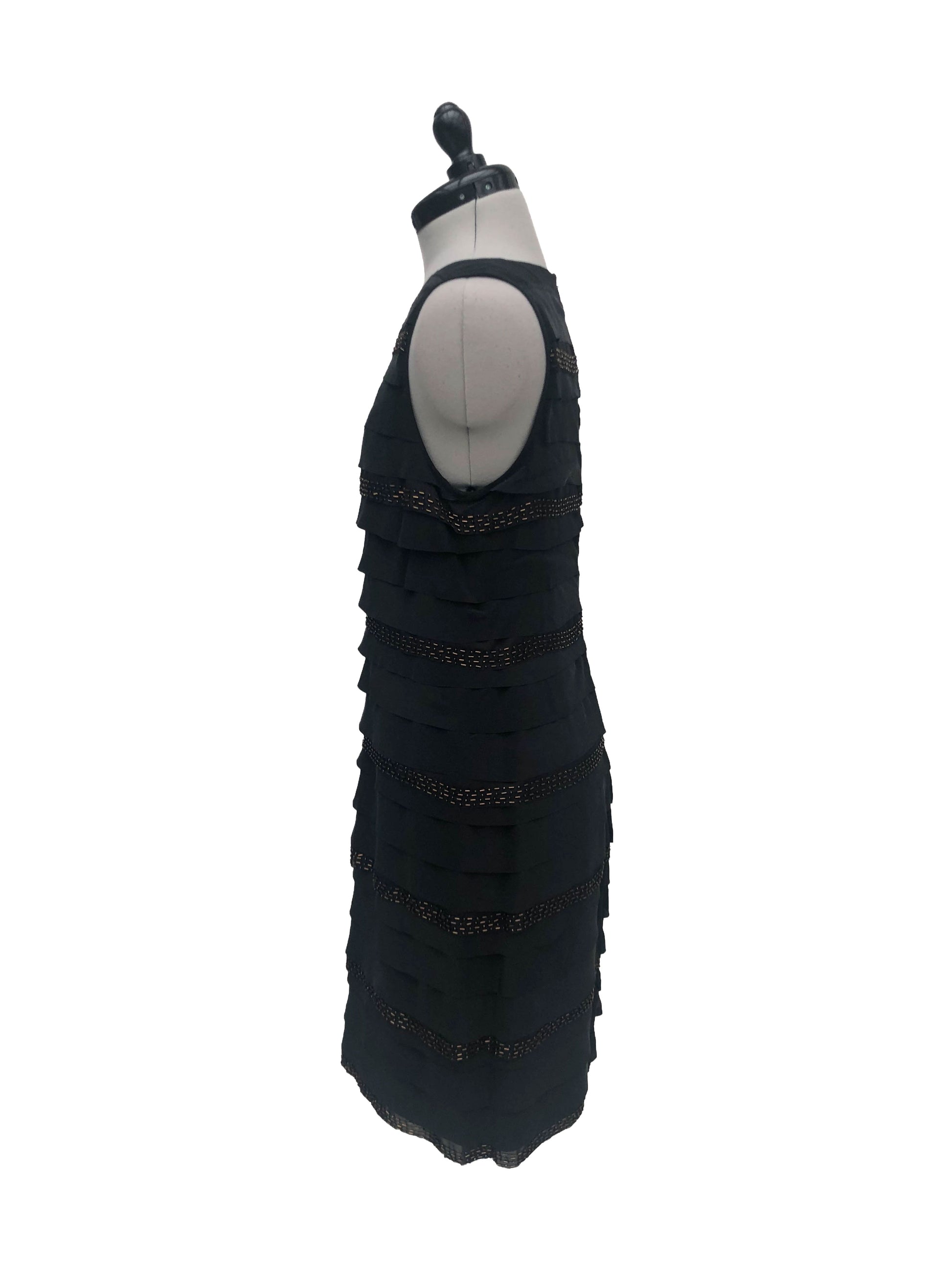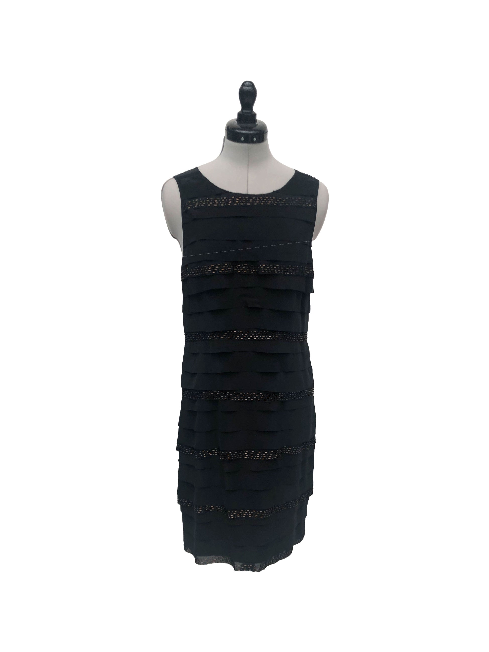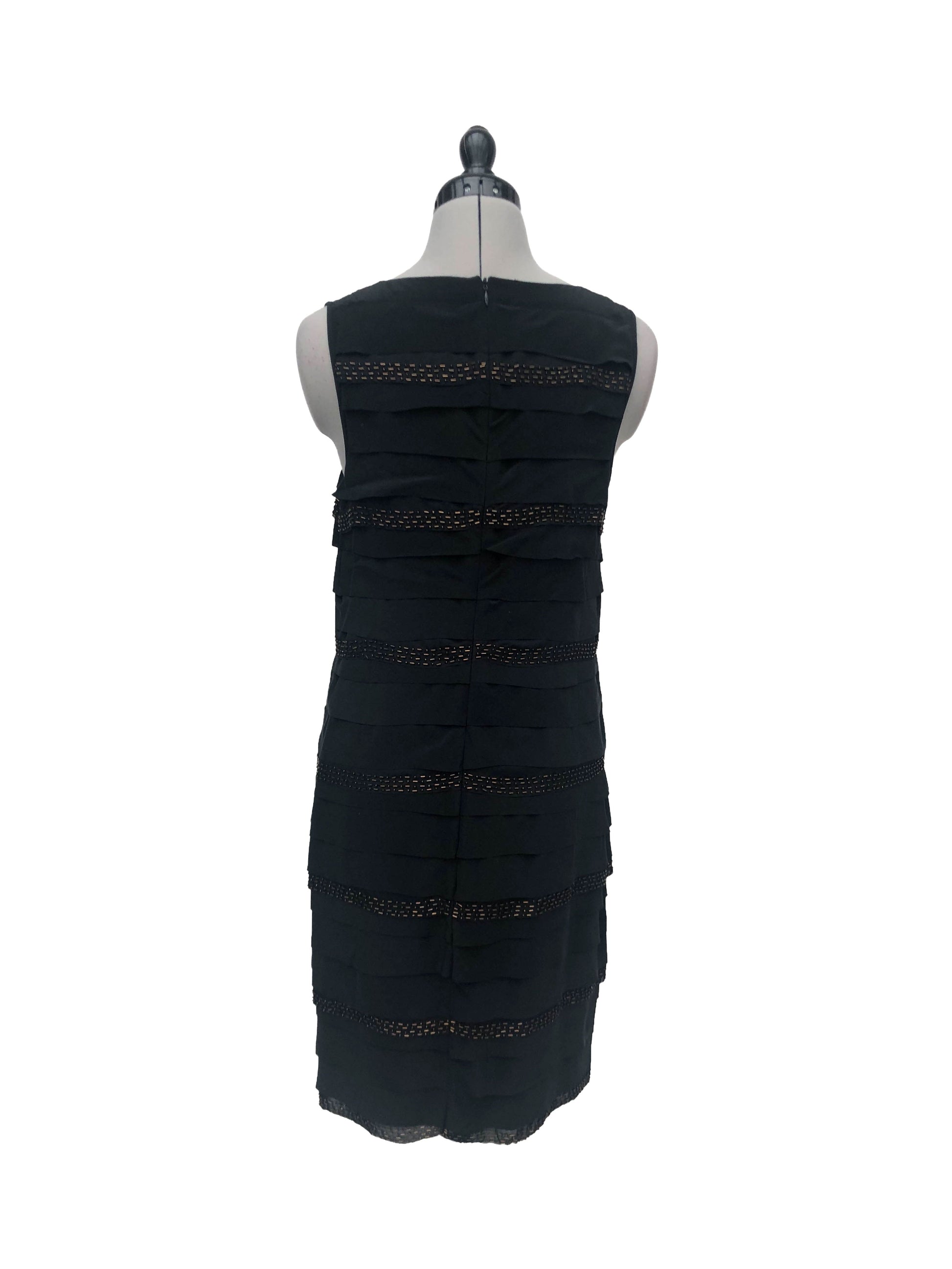 Die festen Träger sind nicht verstellbar, bieten aber einen sicheren Sitz. Der doppellagige Crepe-Stoff fühlt sich angenehm auf der Haut an und verleiht dem Kleid eine edle Struktur. Perfekt geeignet für festliche Anlässe, Apéros oder stilvolle Abendveranstaltungen. 🖤