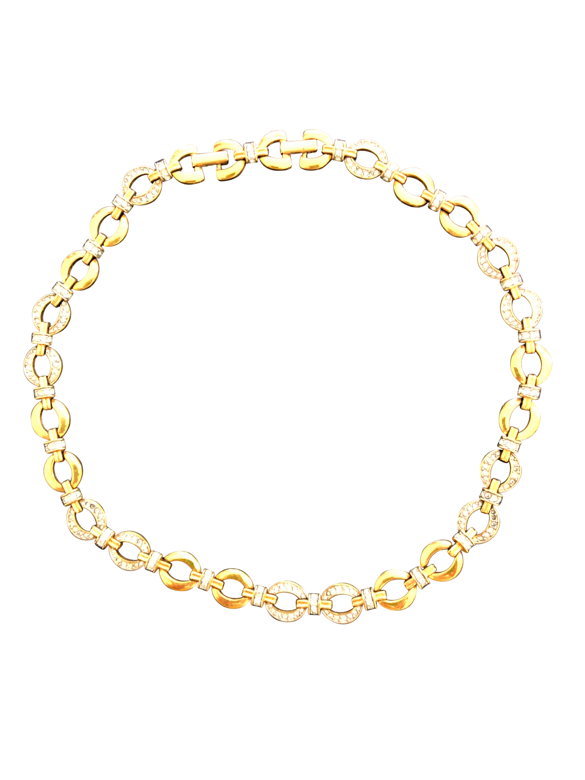 Elegantes Collier in Gelbgold ✨ – dieses Schmuckstück besteht aus goldenen Gliedern und funkelnden Strasssteinen (1 cm breit) und verleiht deinem Look glamouröse Akzente. Mit 42 cm Länge perfekt für festliche Anlässe. 💎