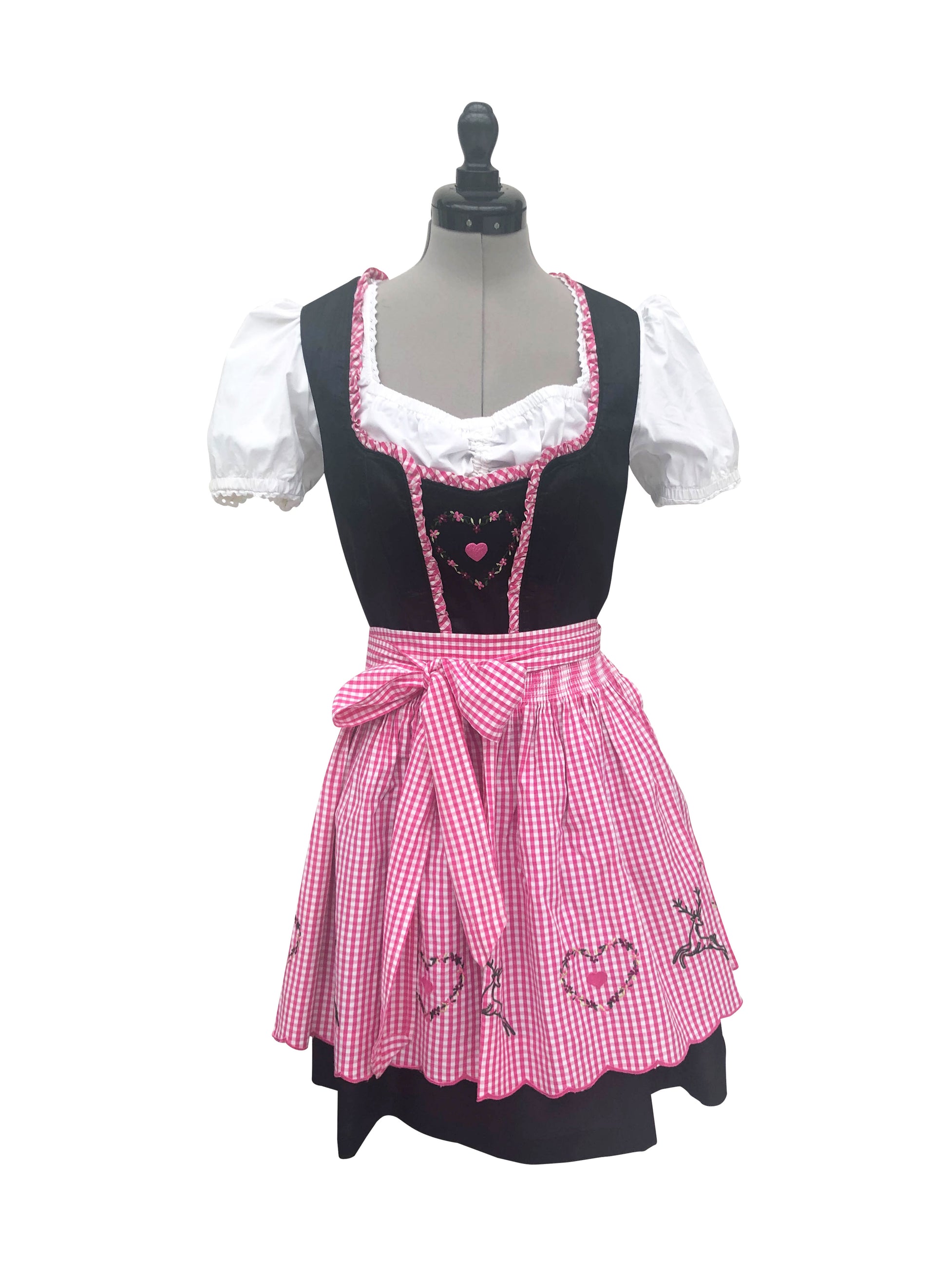 Ein klassisches Dirndlkleid in elegantem Schwarz, das durch die rot-weiss karierte Schürze einen frischen und zugleich traditionellen Akzent erhält. Dieses Modell verbindet schlichte Eleganz mit ländlichem Charme und ist sowohl für das Oktoberfest als auch für festliche Anlässe ideal. Durch den geraden Ausschnitt wirkt das Dirndl besonders dezent und lässt sich vielseitig mit Blusen kombinieren. Ein zeitloser Hingucker für jede Feier. 🖤❤️🤍