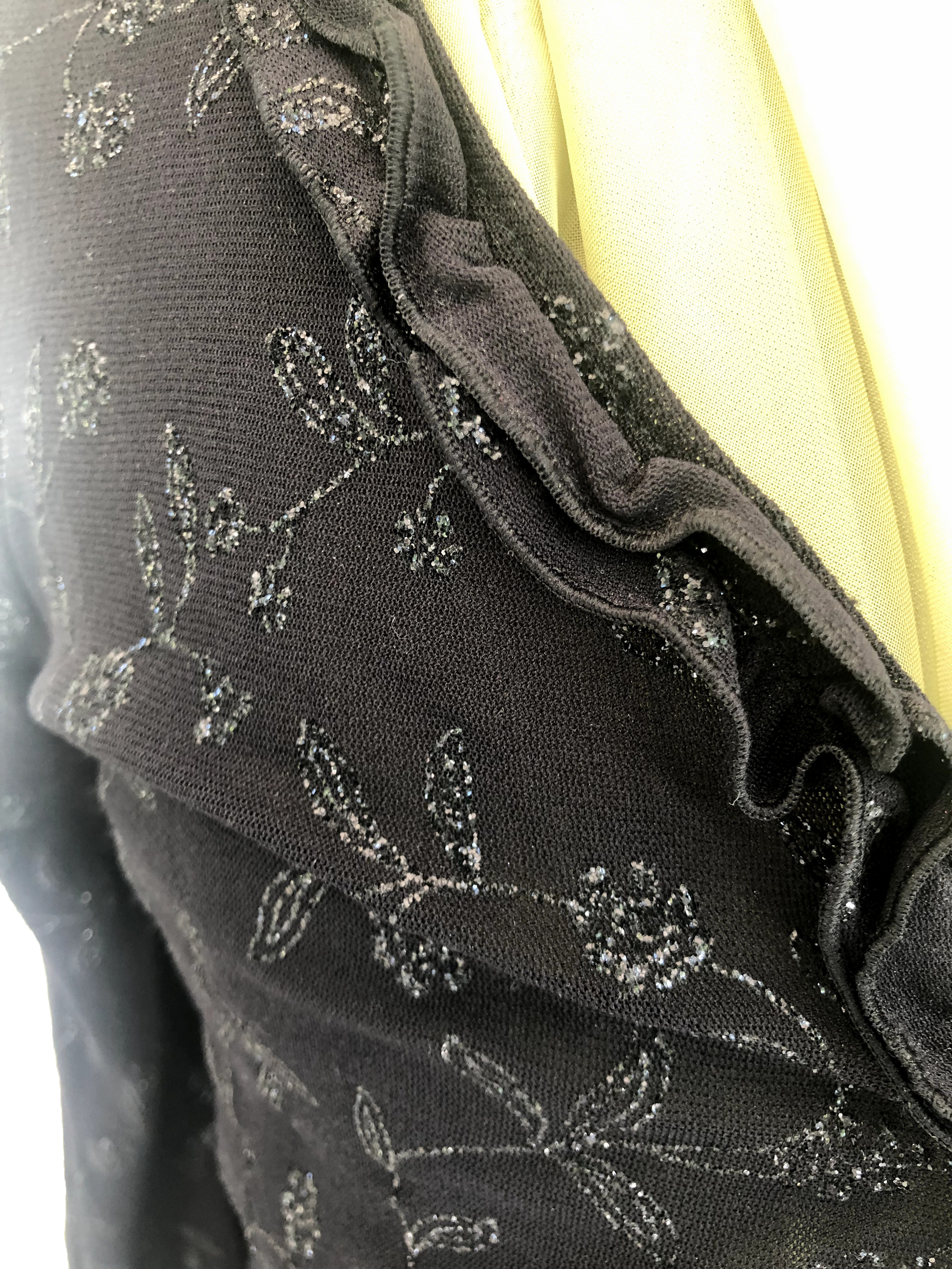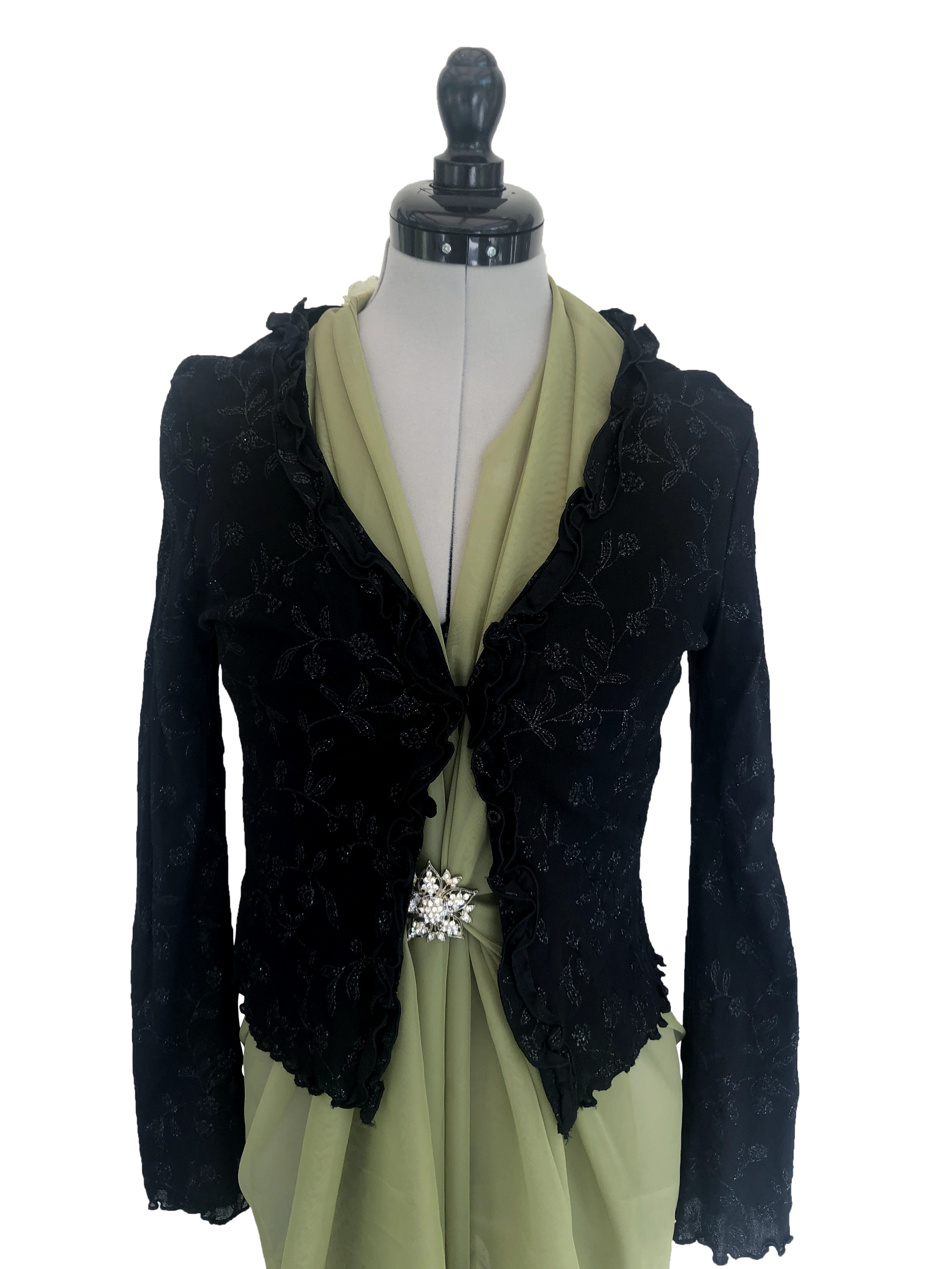 Elegante Jacke zum Knöpfen 🖤✨ – aus Stretch-Material für angenehmen Tragekomfort, verziert mit schwarzen Glitzerblumen, die dem Design einen dezenten, glamourösen Akzent verleihen. Perfekt für festliche Anlässe oder elegante Abendlooks.
