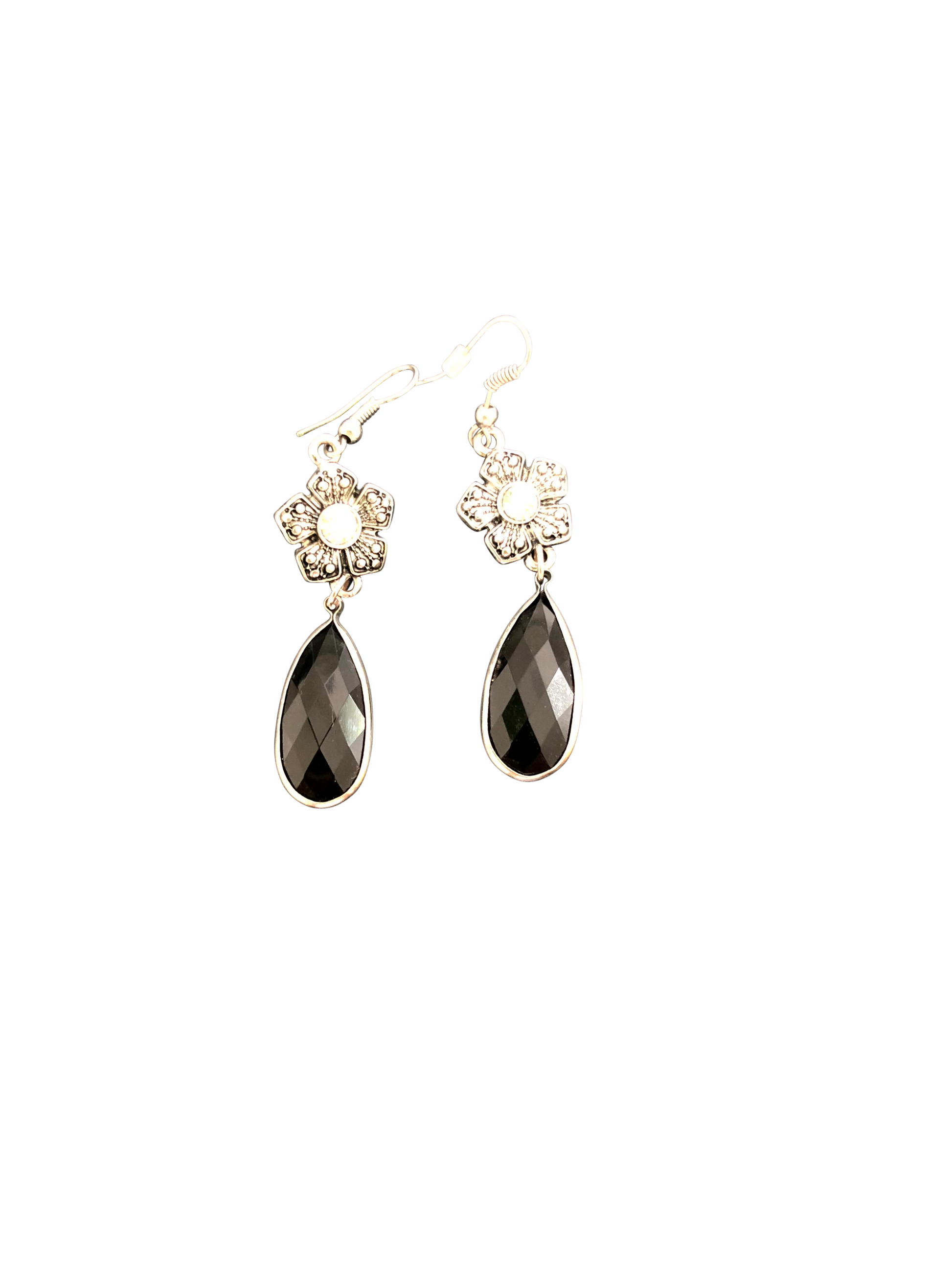 Verleihe deinem Look eine elegante Note mit diesen hängenden Ohrsteckern in Silber und Schwarz. 🌺🖤 Das filigrane Blüten-Design kombiniert mit einem schwarzen Tropfen sorgt für einen stilvollen und zugleich ausdrucksstarken Look – perfekt für Abendveranstaltungen oder besondere Anlässe. ✨