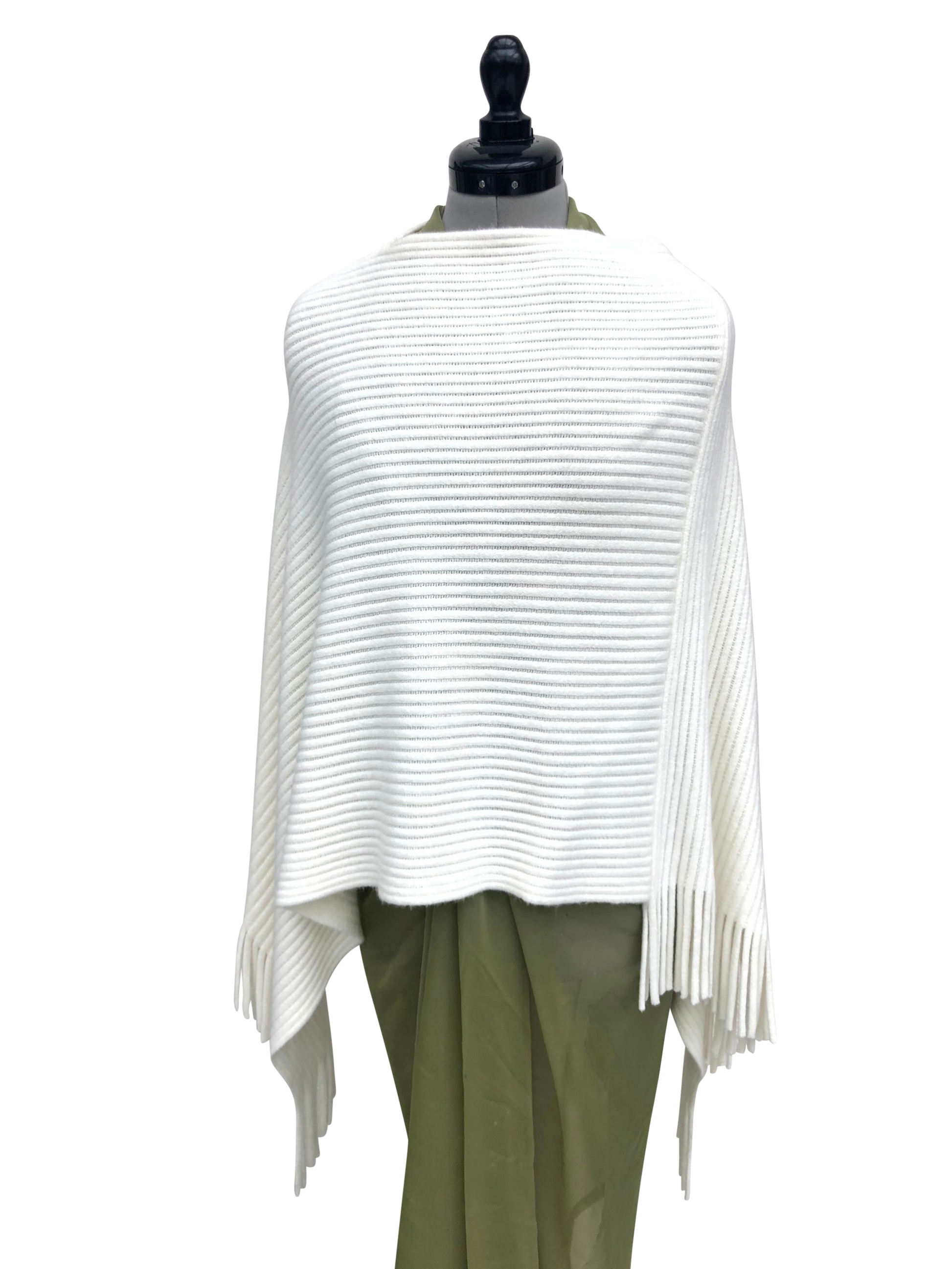 Dieser gestrickte Poncho in Weiss ist der perfekte Begleiter für stilvolle und gemütliche Outfits. 🤍 Das weiche Strickmaterial sorgt für angenehmen Tragekomfort, während die Fransen dem Look eine modische und zugleich lässige Note verleihen. Ideal für kühlere Abende oder als elegantes Accessoire über Kleidern. ✨