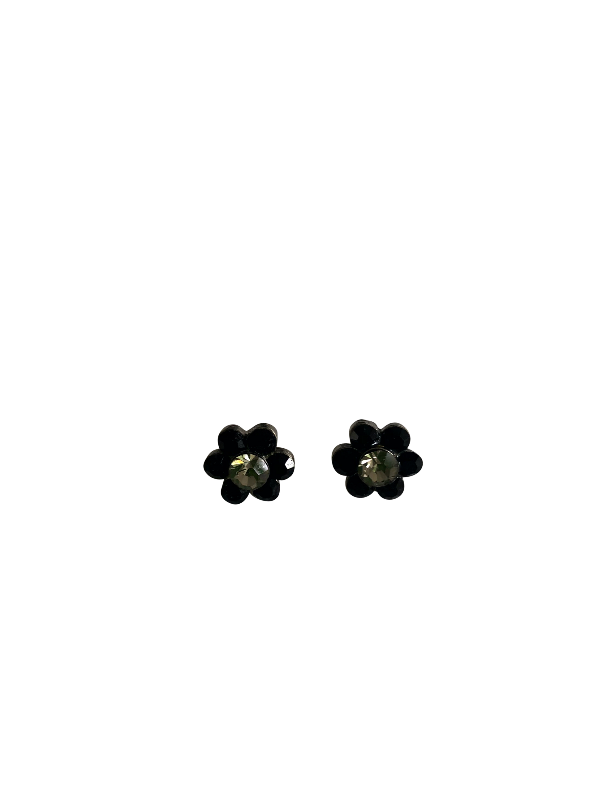 - Ohrstecker: Blümchen aus schwarzen Steinchen