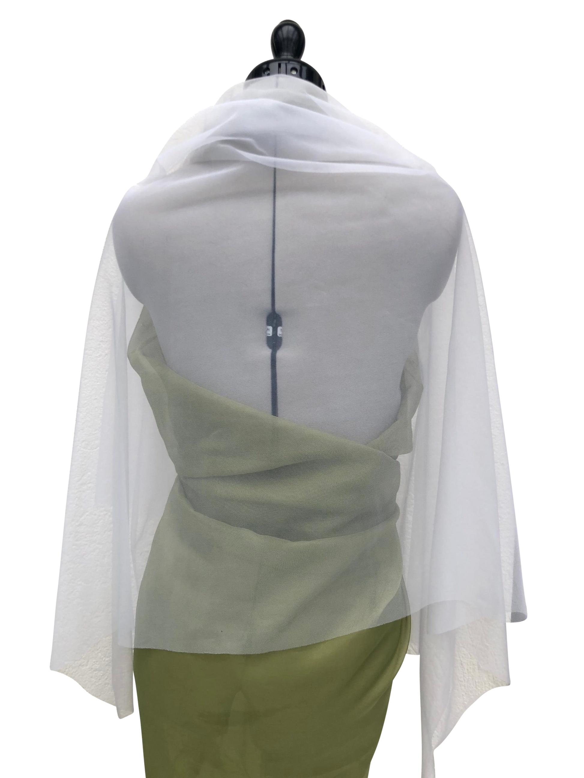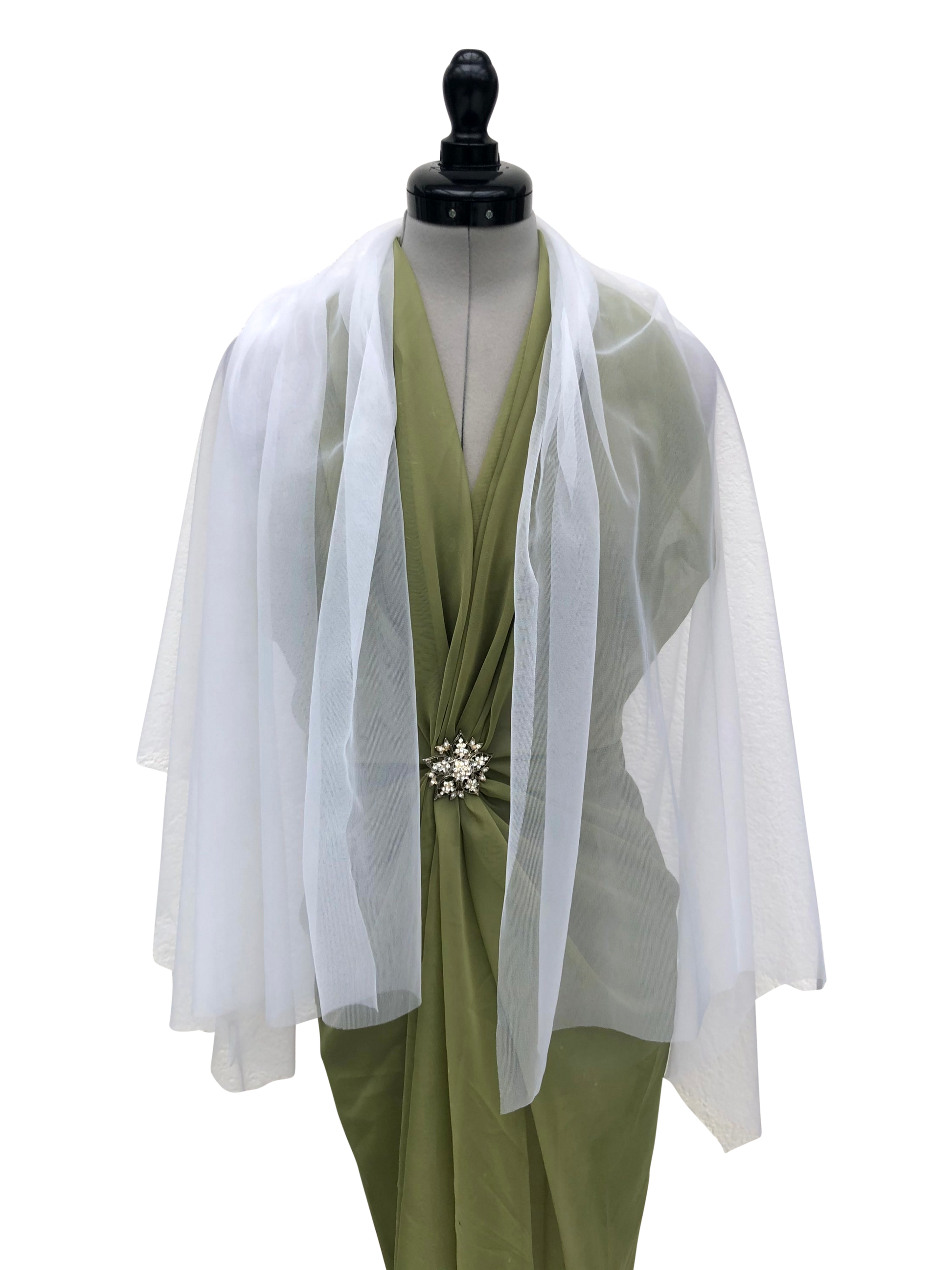 Dieser zarte Umhang aus Tüll in Weiss verleiht deinem Look eine elegante und romantische Ausstrahlung. 🤍 Der leichte, transparente Stoff fällt sanft über die Schultern und ergänzt dein Abendkleid oder Brautoutfit perfekt. ✨